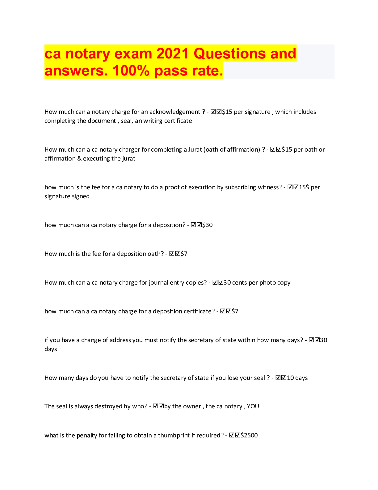 Law> QUESTIONS & ANSWERS > CA NOTARY EXAM_Questions_Answered_Rated A+. latest version. (All)