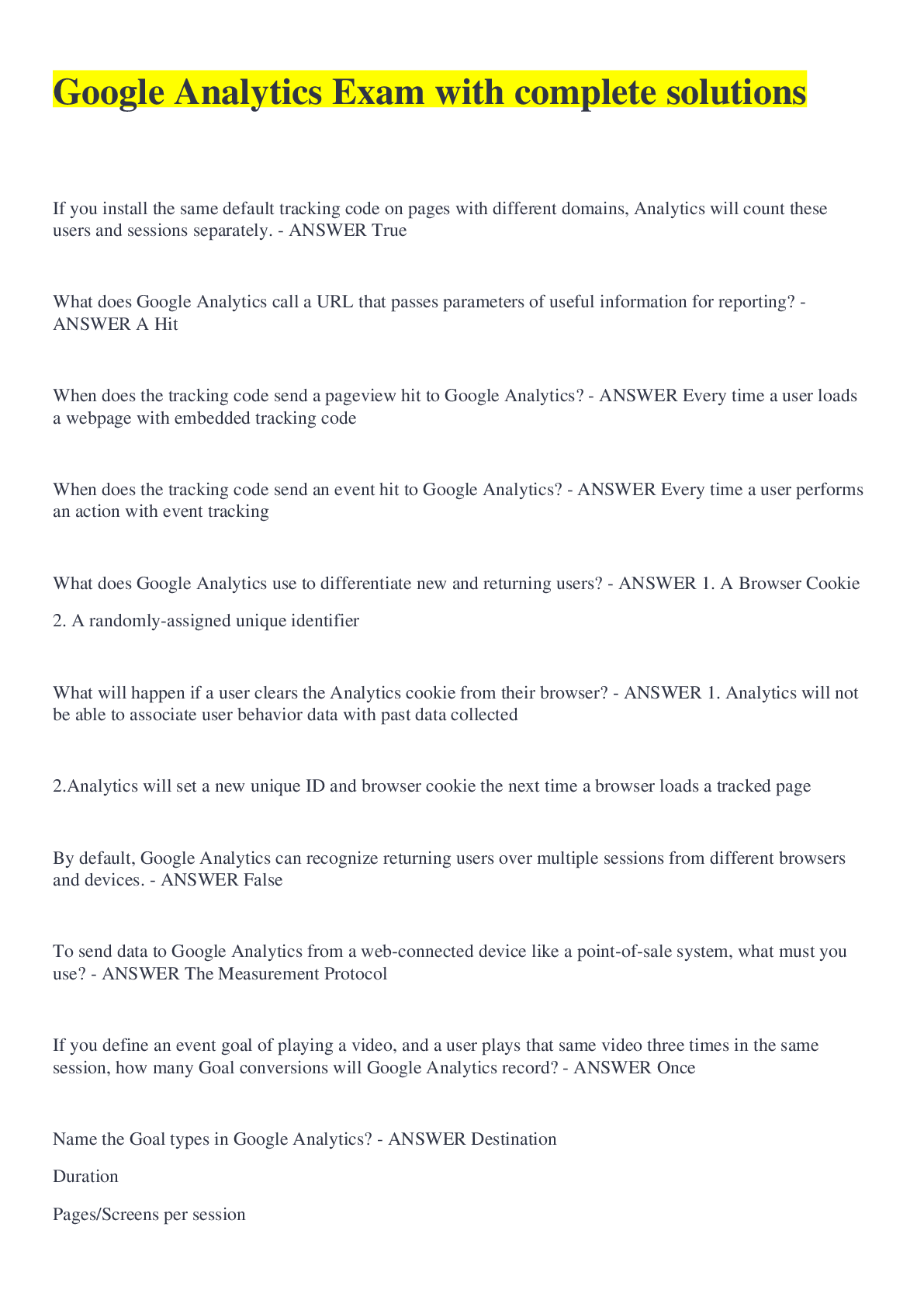 Computer Science> EXAM > Google Analytics Exam Questions and Answers (All)