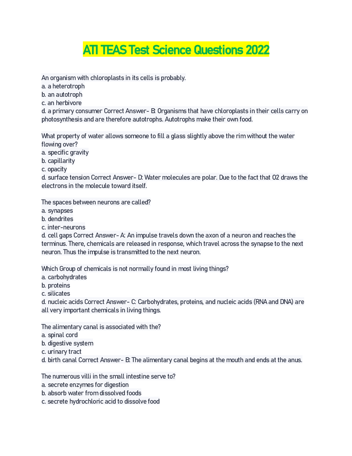 *NURSING> EXAM > ATI TEAS Test Science Questions 2022 (All)