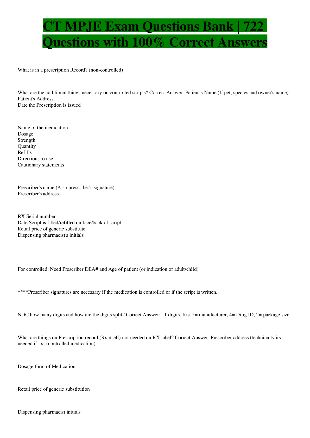 Law> EXAM > CT MPJE Exam Questions Bank | 722 Questions with 100% Correct Answers (All)