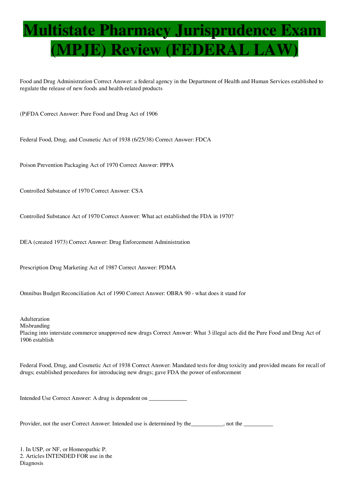 Law> EXAM > Multistate Pharmacy Jurisprudence Exam (MPJE) Review (FEDERAL LAW) (All)