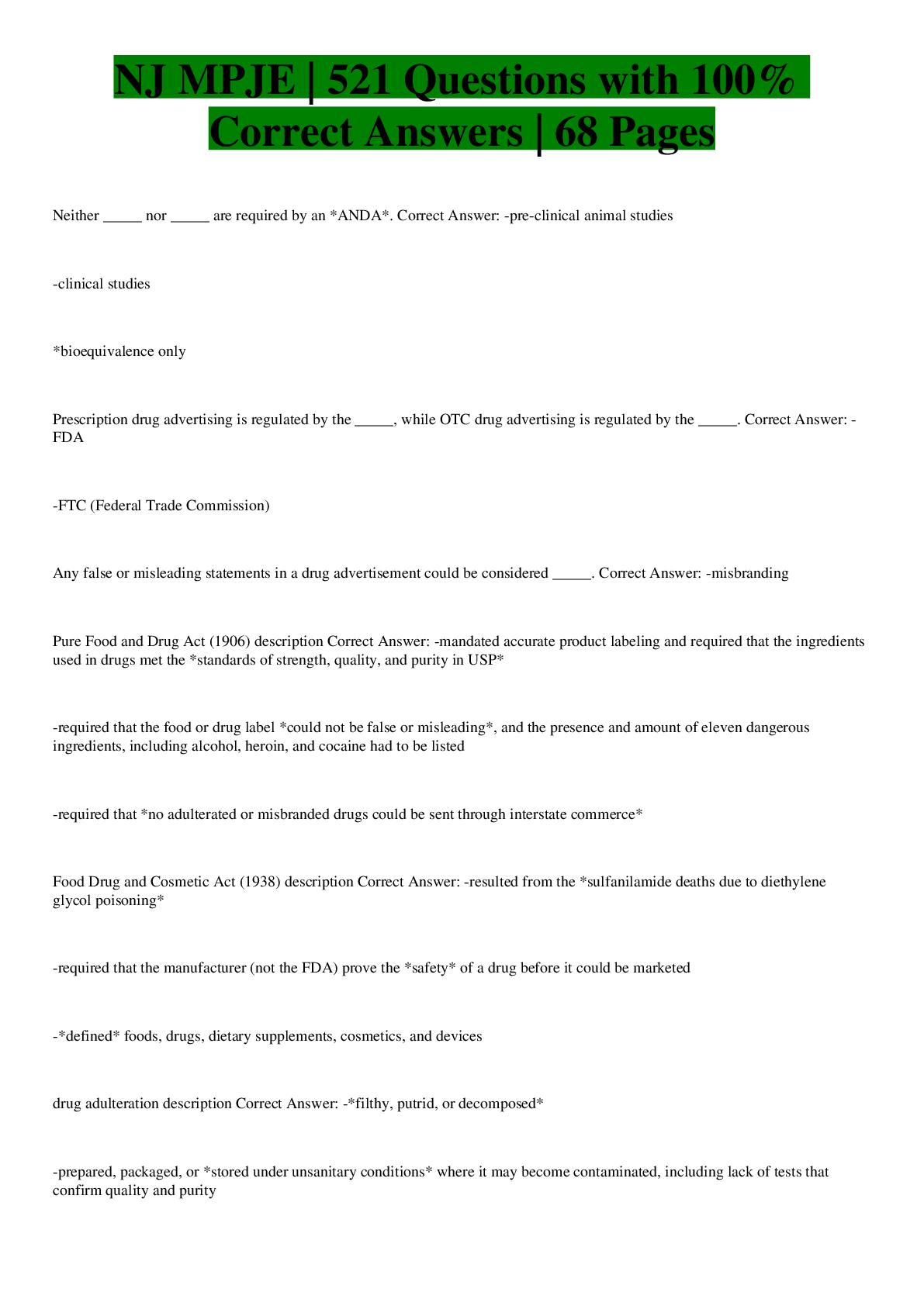 Law> EXAM > NJ MPJE | 521 Questions with 100% Correct Answers | 68 Pages (All)