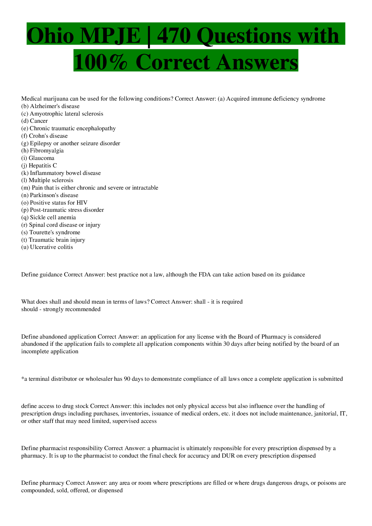 Law> EXAM > Ohio MPJE | 470 Questions with 100% Correct Answers (All)