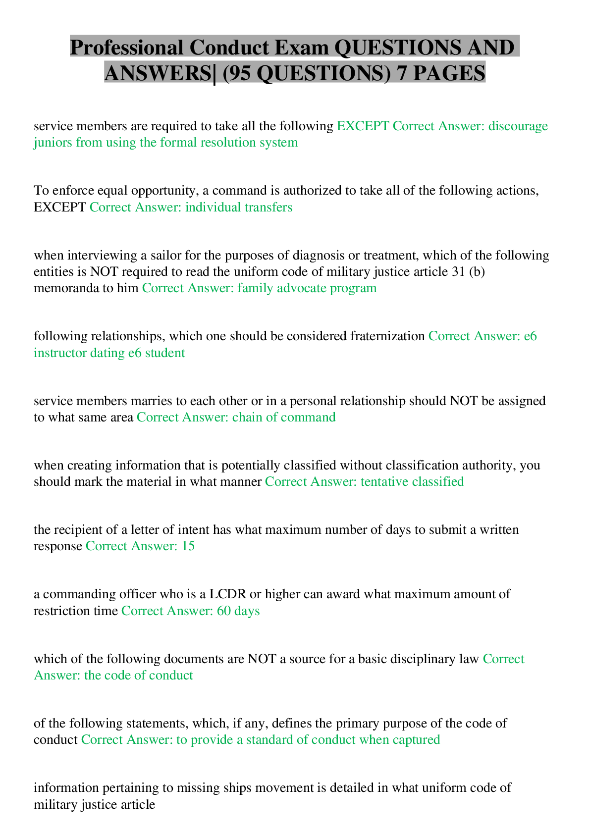 Professional Conduct Exam QUESTIONS AND ANSWERS| (95 QUESTIONS) 7 PAGES