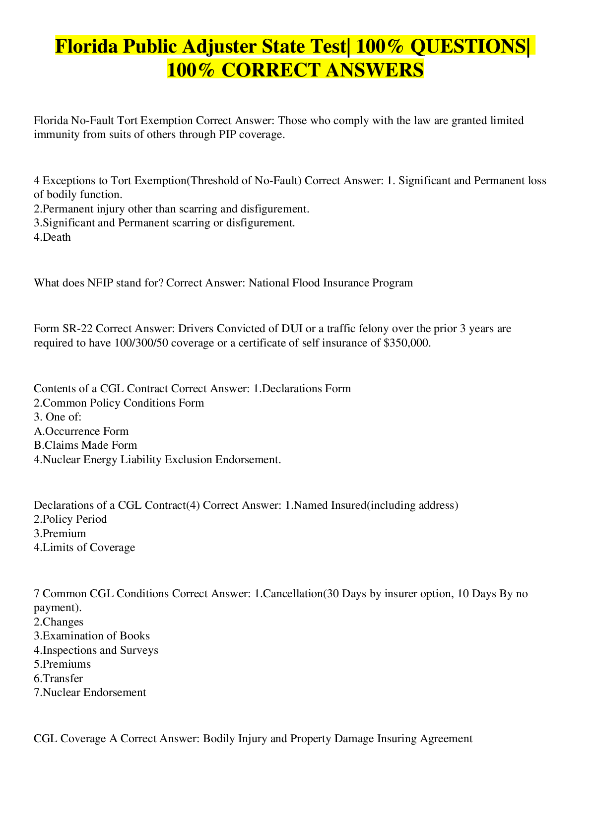 Business> EXAM > Florida 3-20 Public Adjusters State Exam (Set 1)| 140 QUESTIONS| 11 PAGES (All)