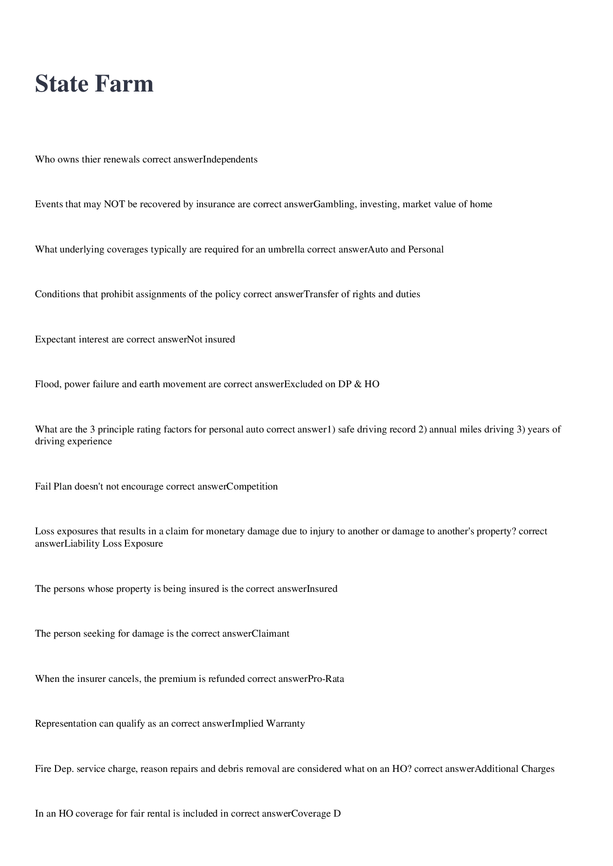Business> EXAM > State Farm| 141 QUESTIOINS| 8 PAGES| GRADED A (All)