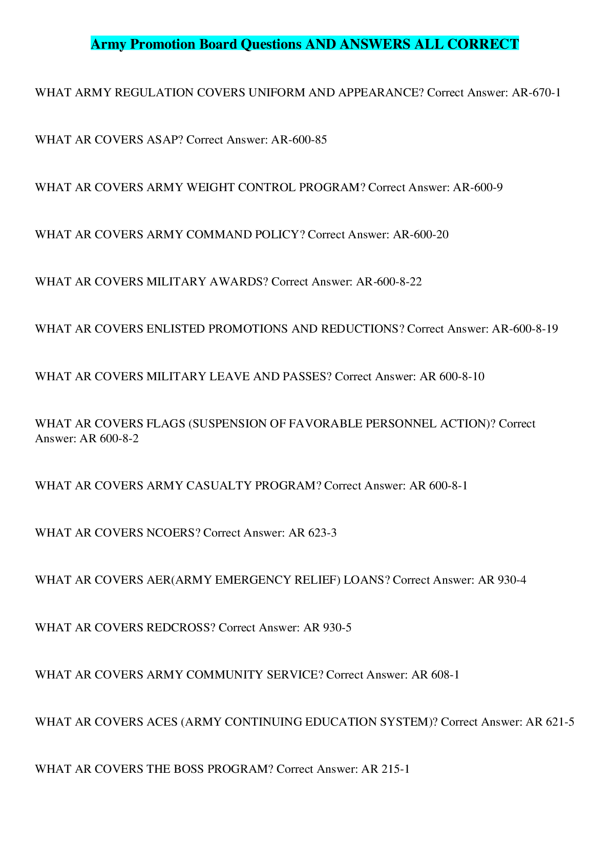 Government> EXAM > Army Promotion Board Questions AND ANSWERS ALL CORRECT (All)