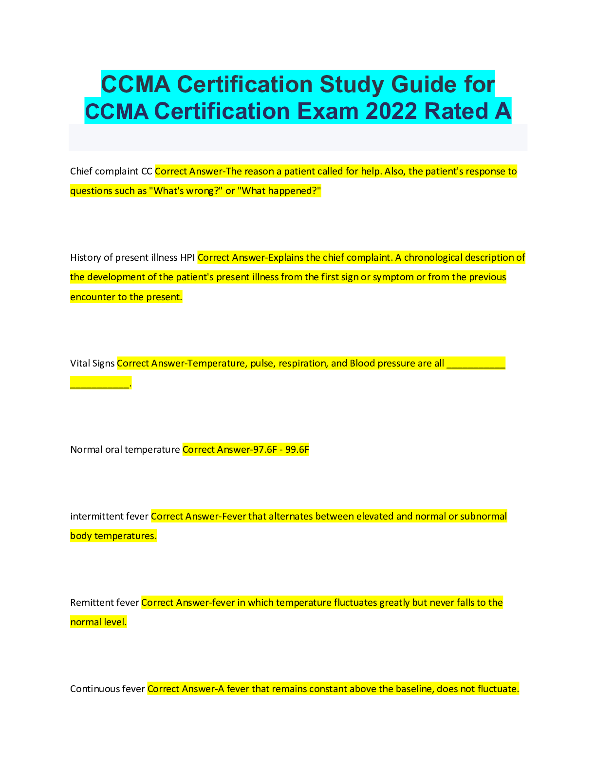 *NURSING> EXAM > CCMA Certification Study Guide for CCMA Certification Exam 2022 Rated A (All)