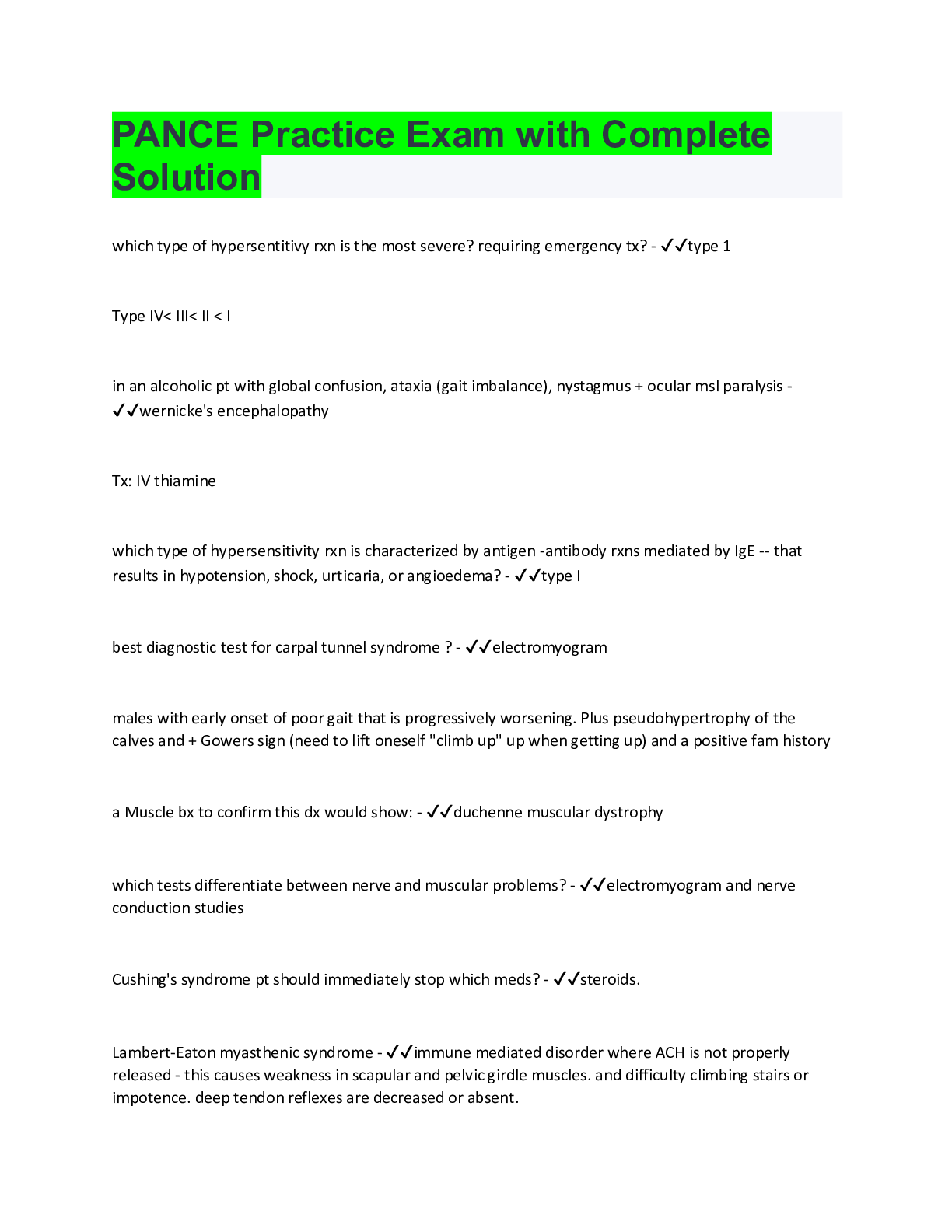 Health Care> EXAM > PANCE Practice Exam Questions COMPLETE SOLUTION (All)