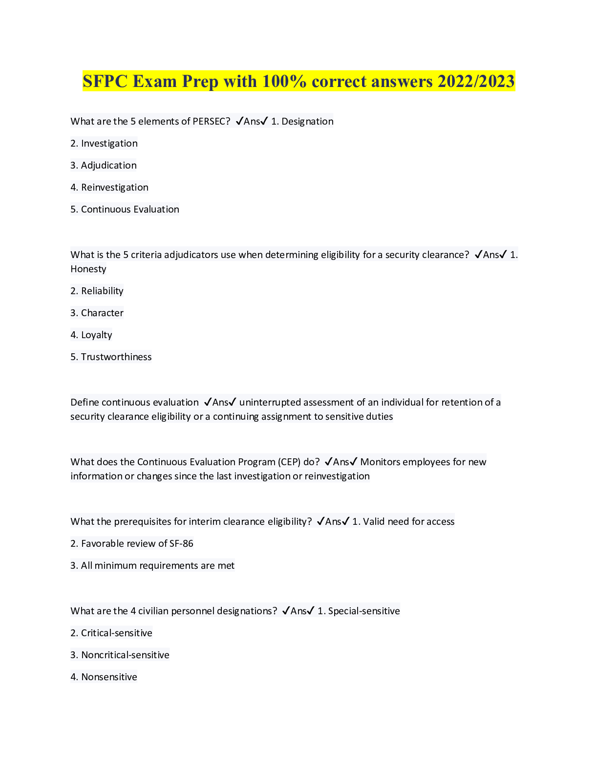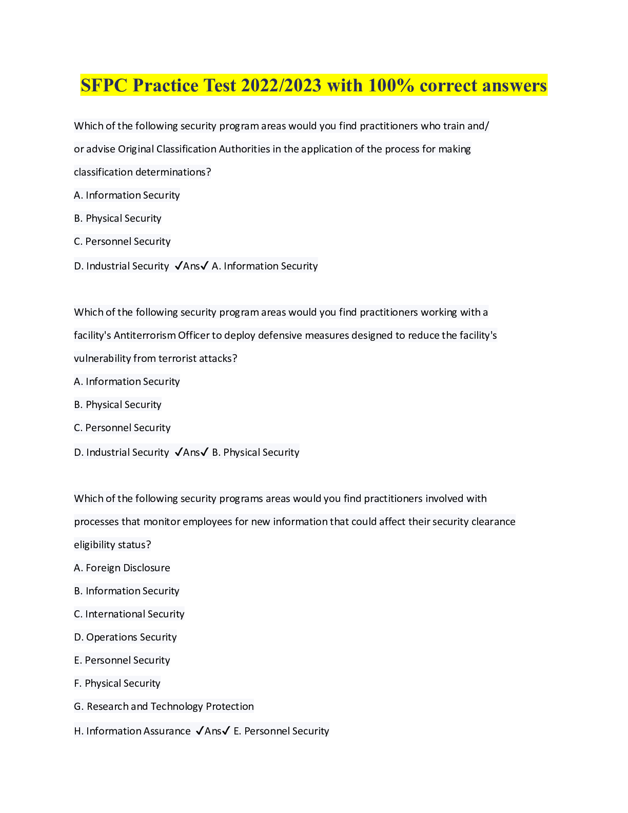 SPēD SFPC: All Areas Questions And Answers/ Latest Update 2022_2023