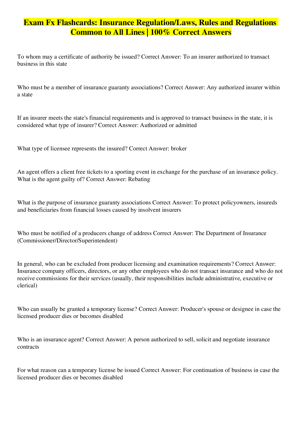 Business> EXAM > Exam Fx Flashcards: Insurance Regulation/Laws, Rules and Regulations Common to All Lines | 100% Correct Answers (All)