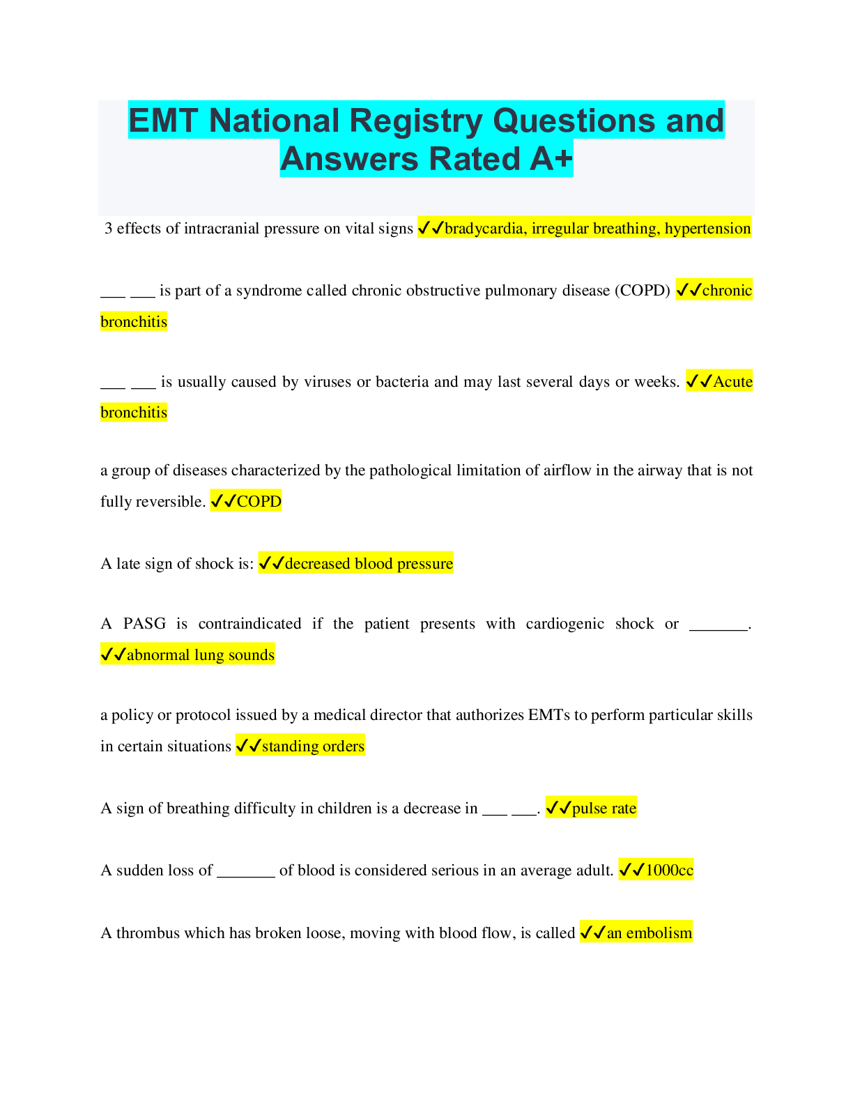 Health Care> EXAM > EMT National Registry Questions and Answers Rated A+ (All)