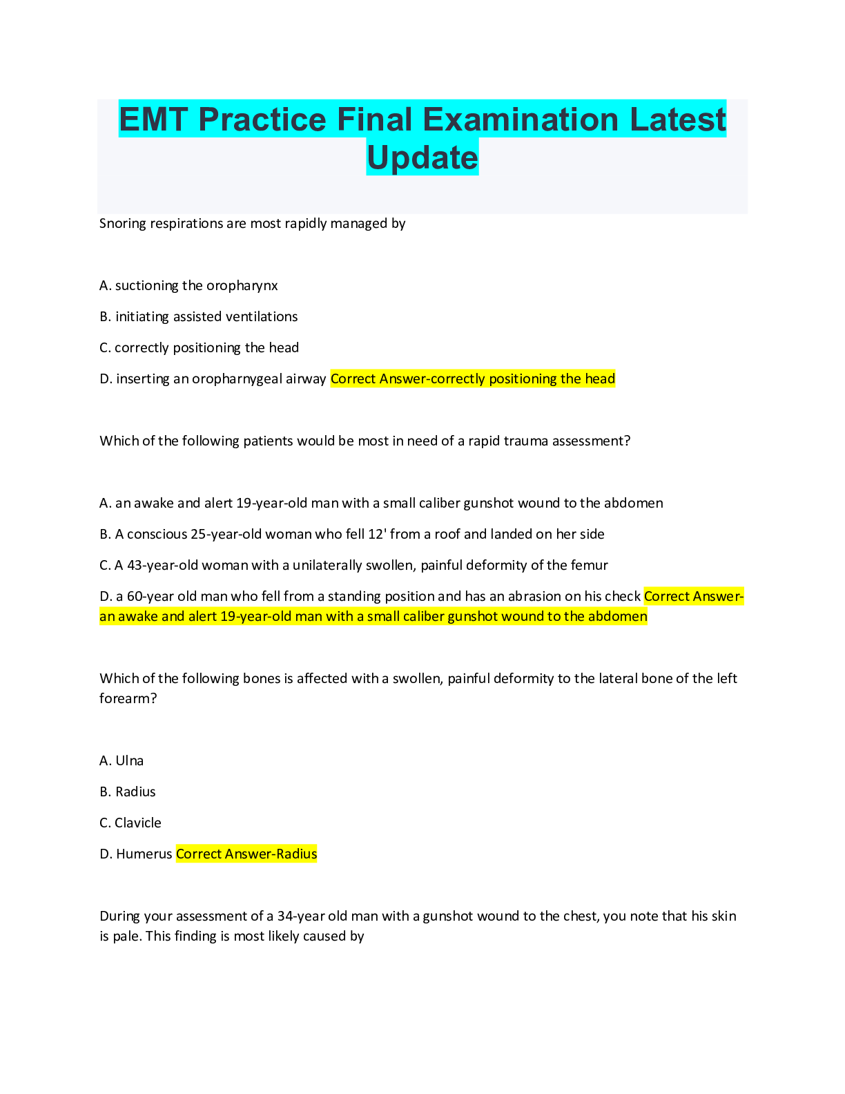 Health Care> EXAM > EMT Practice Final Examination Latest Update (All)