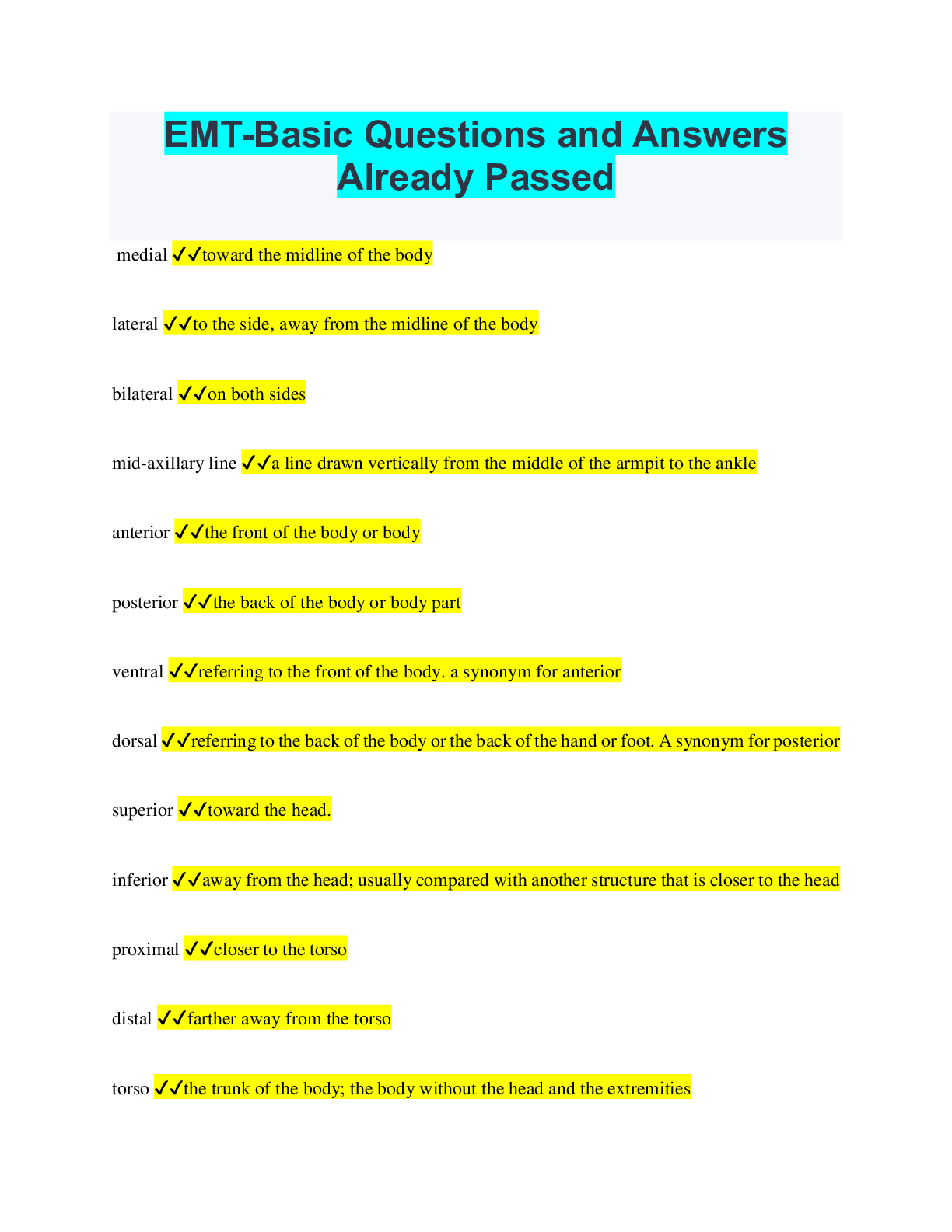 Health Care> EXAM > EMT Basic Questions and Answers Rated A (All)