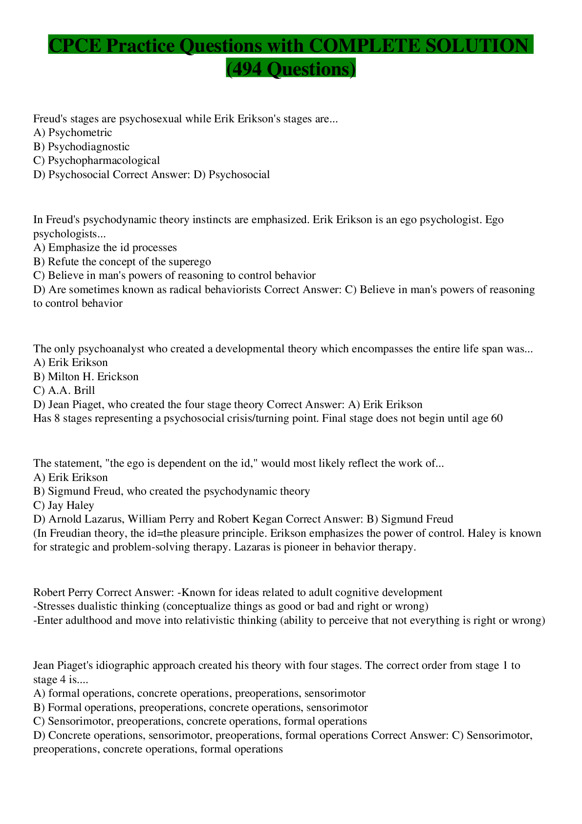 Education> EXAM > CPCE Practice Questions with COMPLETE SOLUTION (494 Questions) (All)
