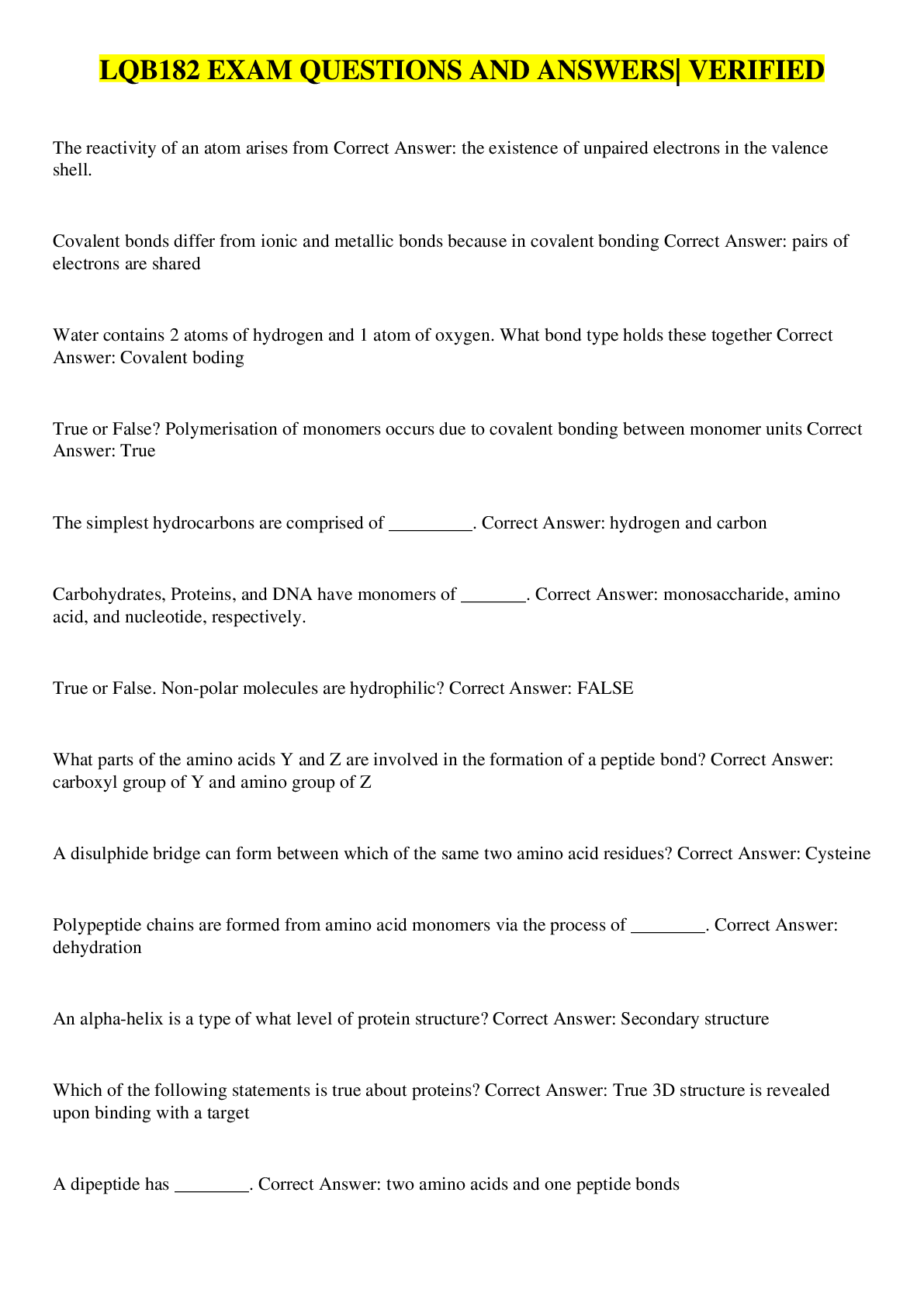 Health Care> EXAM > LQB182 EXAM STUDY QUESTIONS WITH ANSWERS| VERIFIED (All)