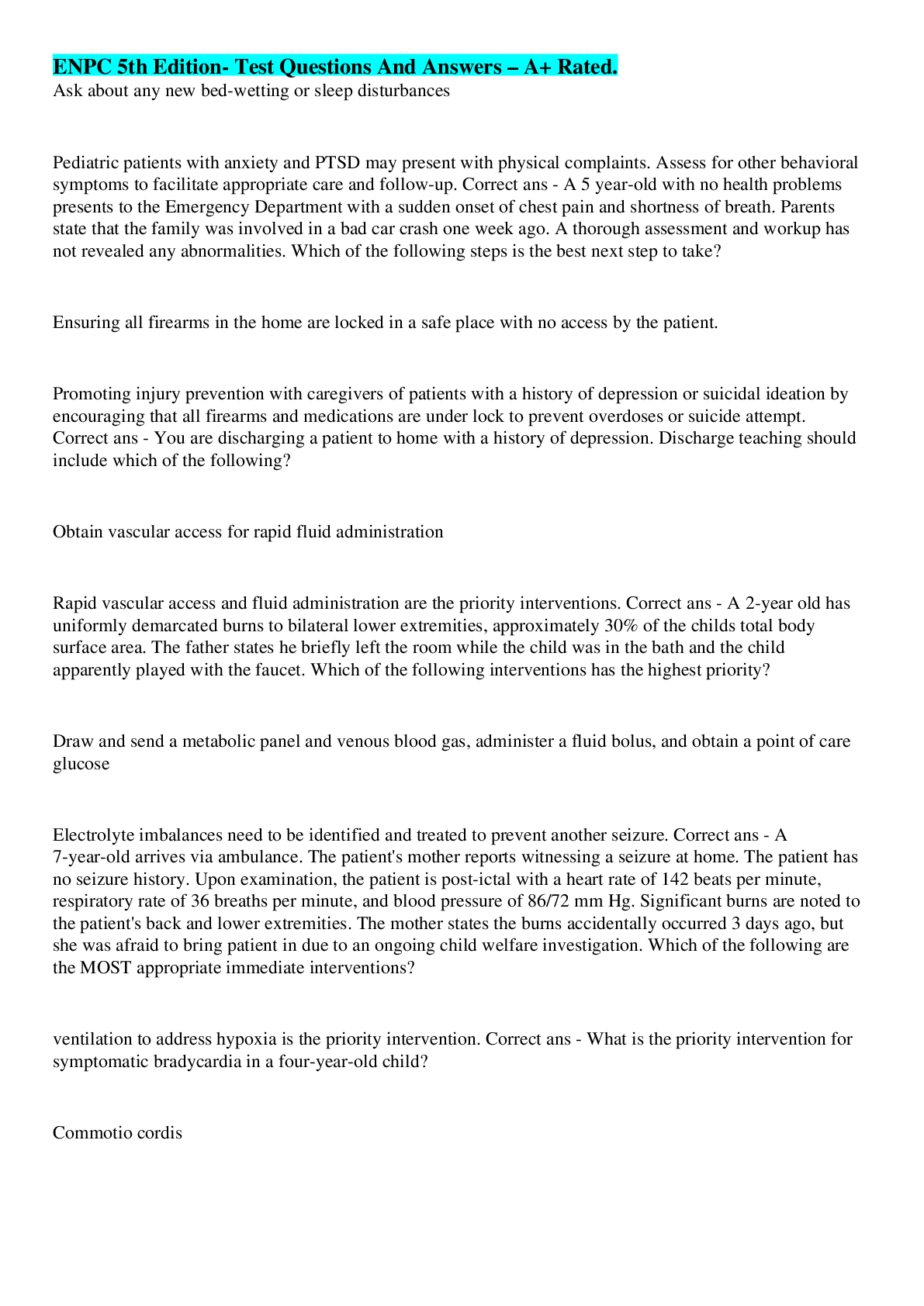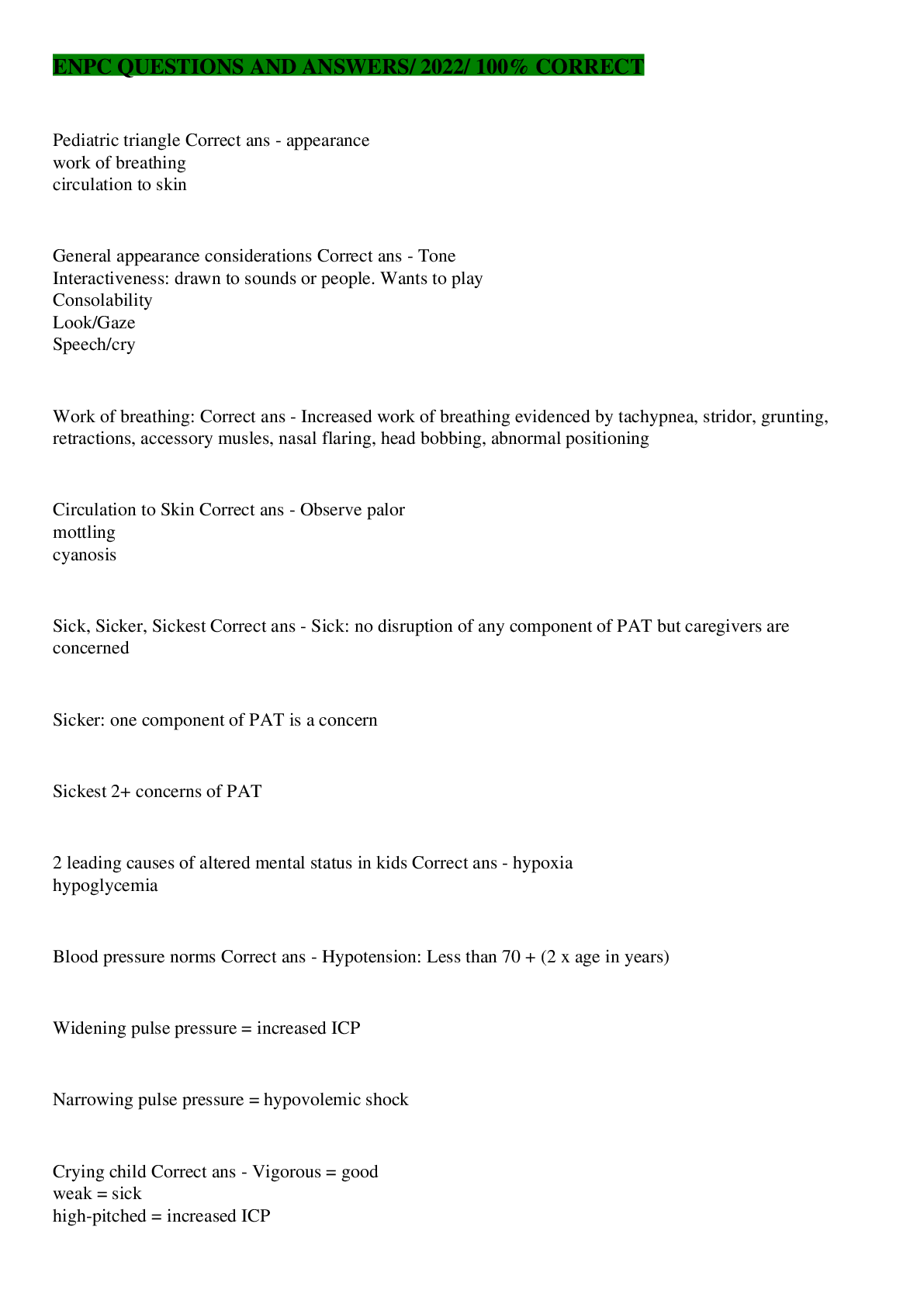 Health Care> EXAM > ENPC Test -Questions Correctly Answered - 100% Accurately (All)