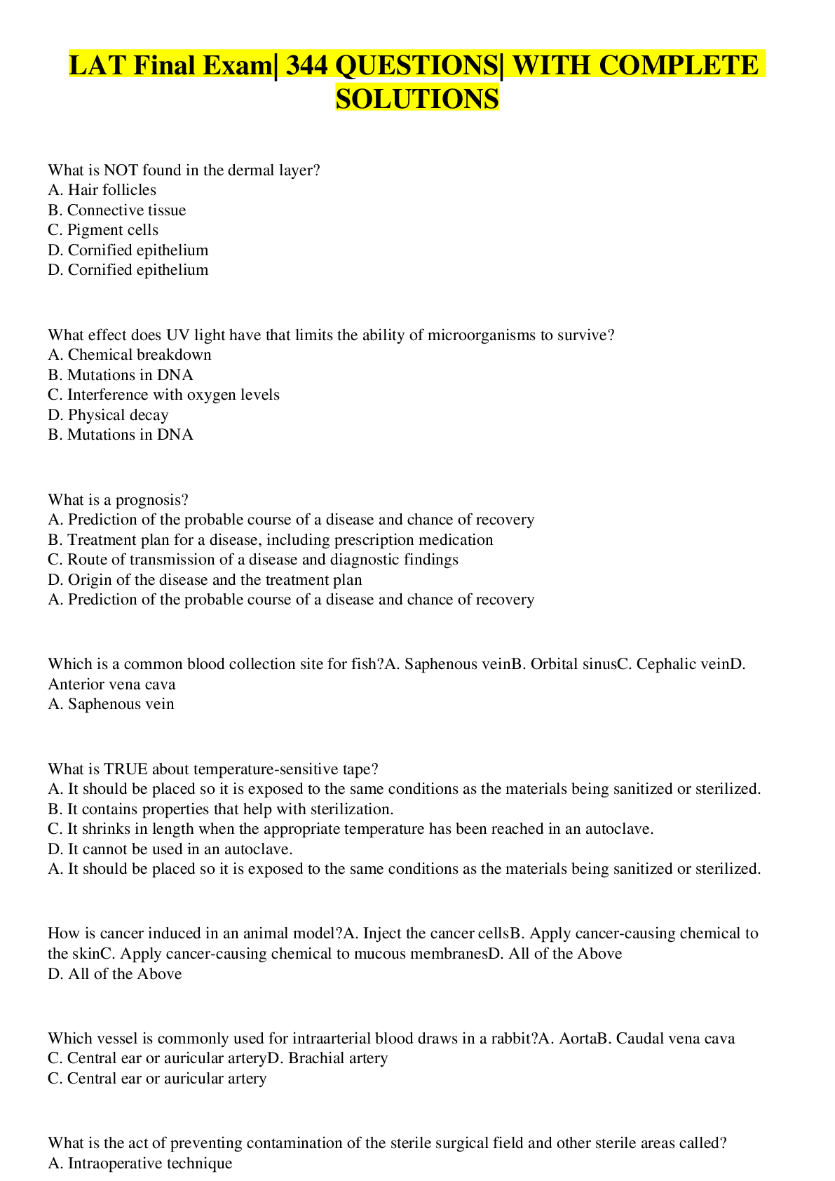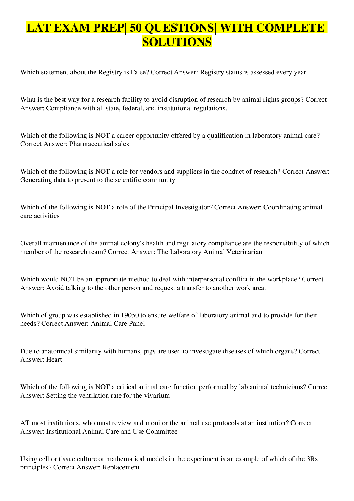 Health Care> EXAM > LAT EXAM PREP| 50 QUESTIONS| WITH COMPLETE SOLUTIONS (All)