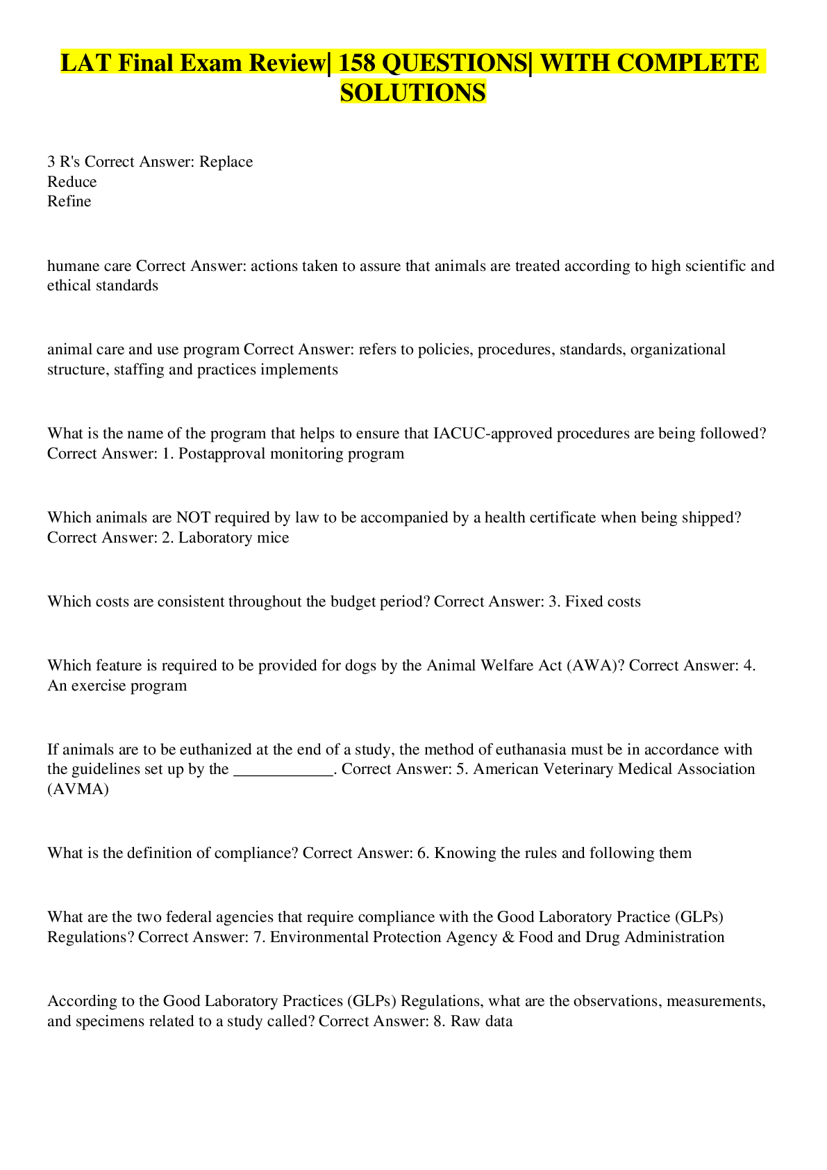 Health Care> EXAM > LAT Final Exam Review| 158 QUESTIONS| WITH COMPLETE SOLUTIONS (All)