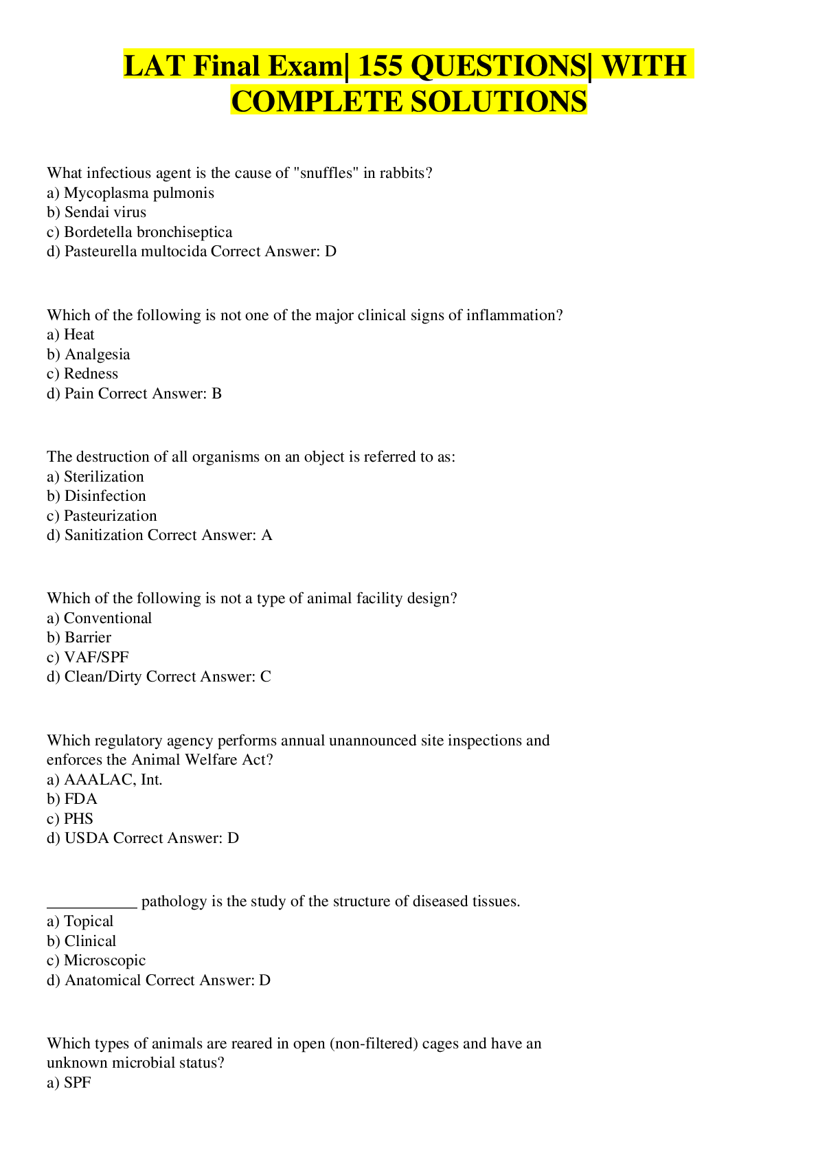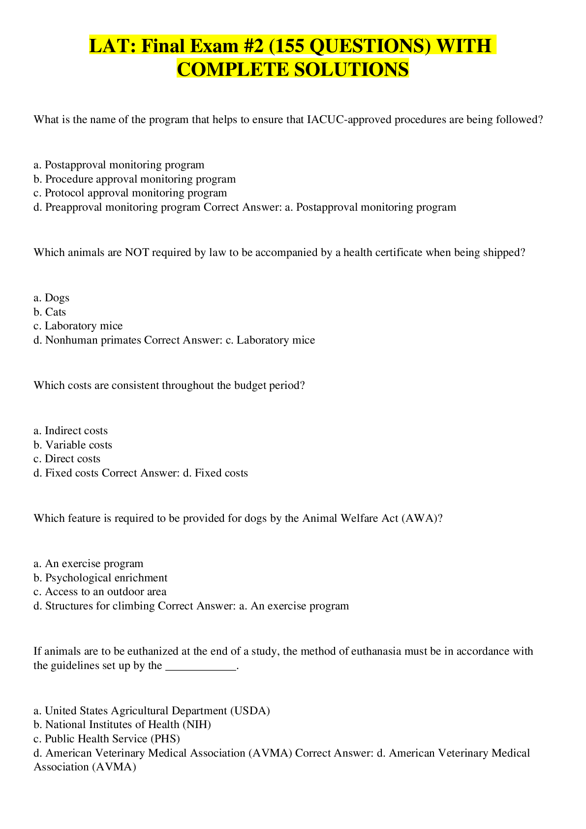 Health Care> EXAM > LAT Final Exam| 155 QUESTIONS| WITH COMPLETE SOLUTIONS (All)