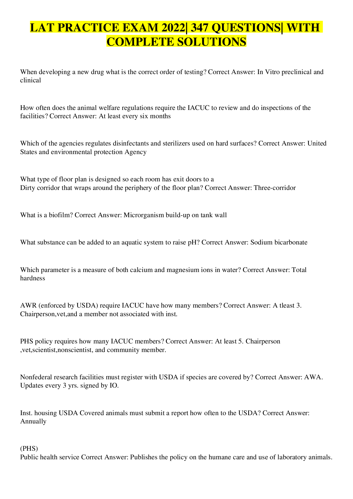Health Care> EXAM > LAT PRACTICE EXAM 2022| 347 QUESTIONS| WITH COMPLETE SOLUTIONS (All)