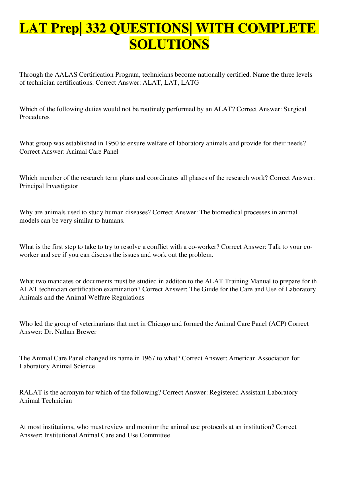 Health Care> EXAM > LAT Laboratory Animal Technician| 387 QUESTIONS| WITH COMPLETE SOLUTIONS (All)