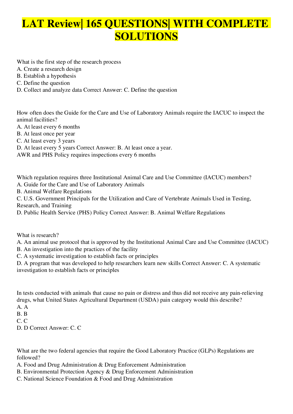 Health Care> EXAM > LAT Review| 165 QUESTIONS| WITH COMPLETE SOLUTIONS (All)