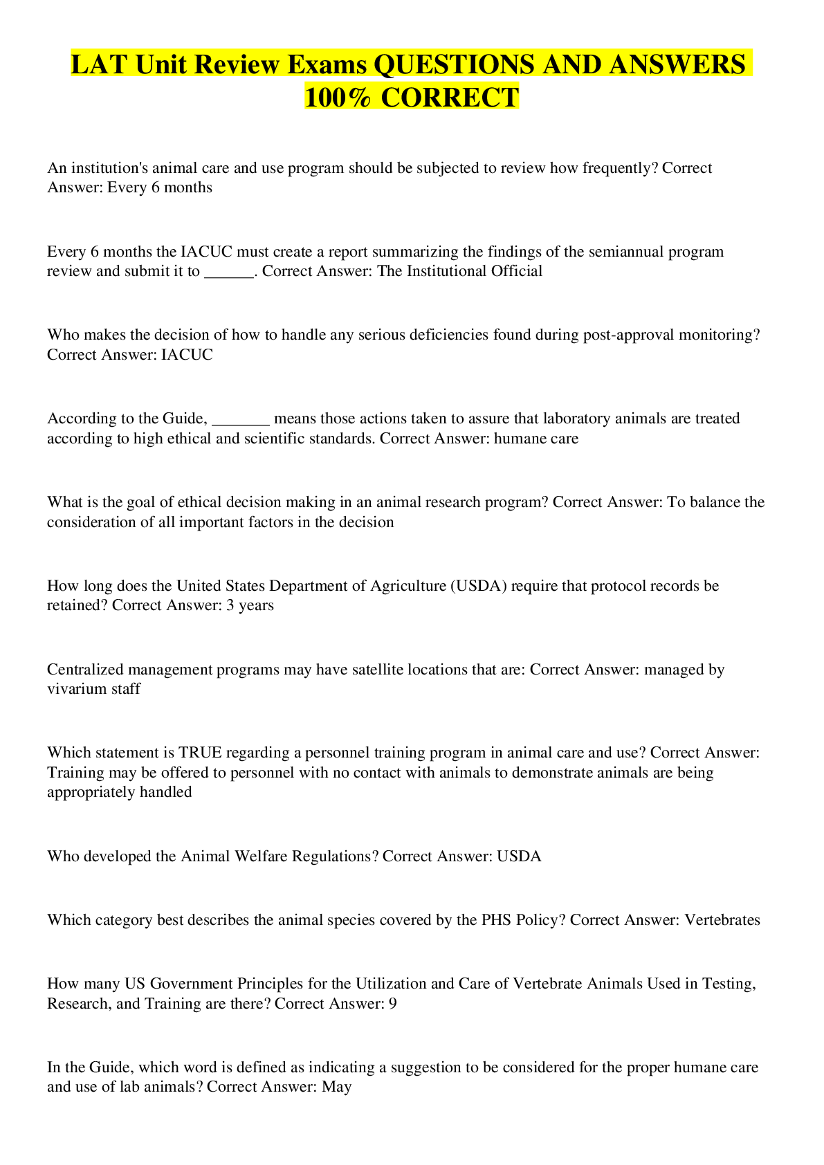 Health Care> EXAM > LAT Unit Review Exams QUESTIONS AND ANSWERS 100% CORRECT (All)