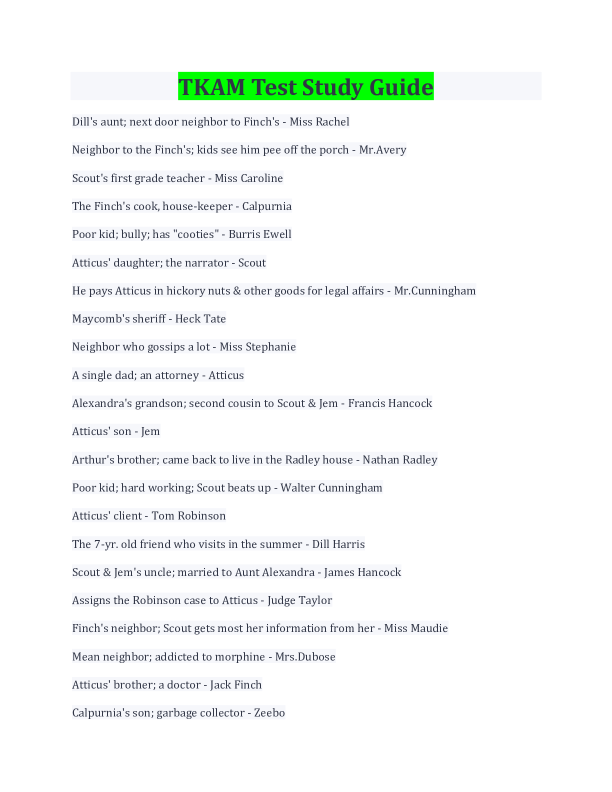 English> EXAM > TKAM Full Book Test Questions And Answers 2022/2023 (All)
