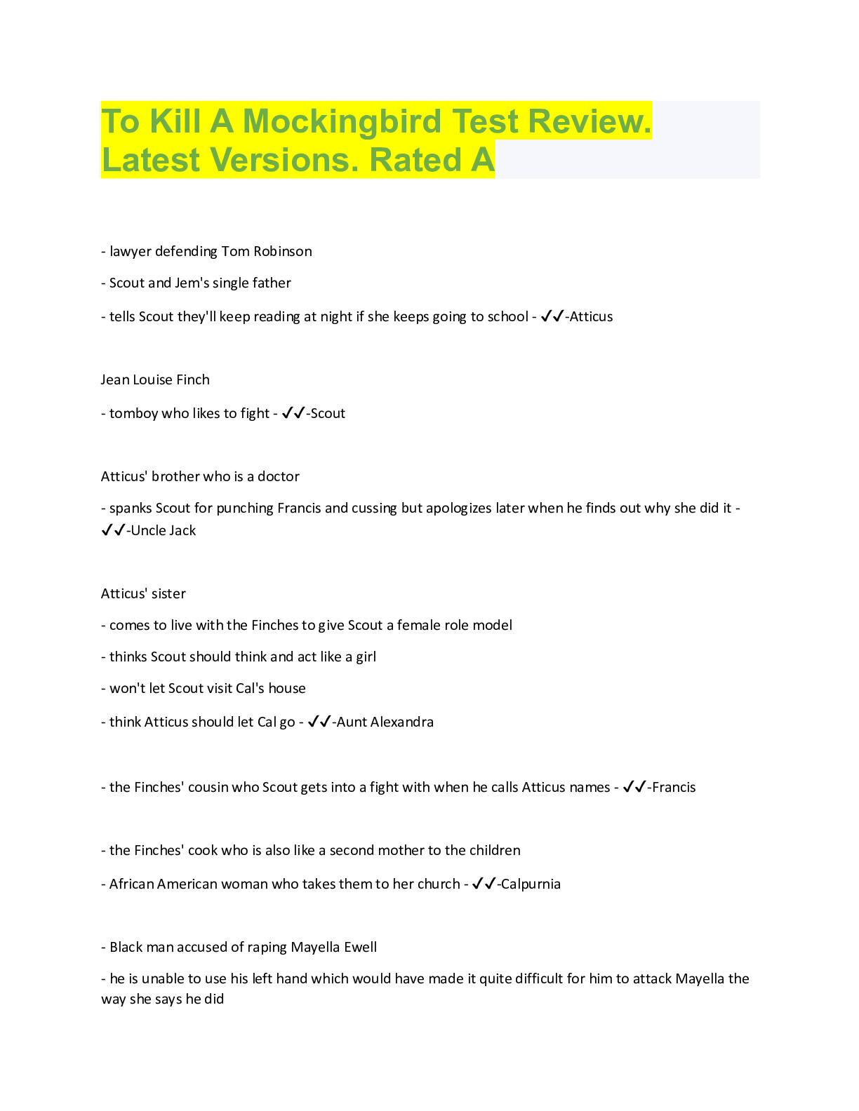 To Kill A Mockingbird Test Review 2022/2023 With Complete Solution