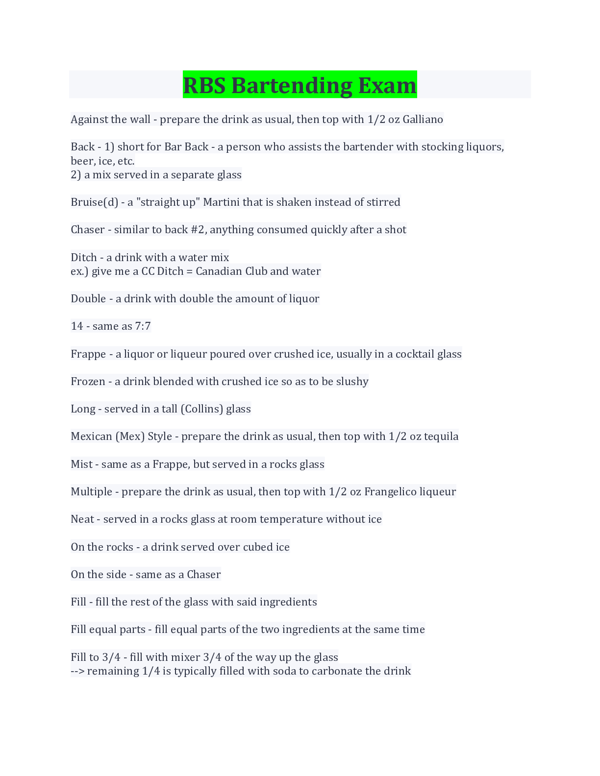 Health Care> EXAM > RBS Bartending Exam Questions And Answers (All)