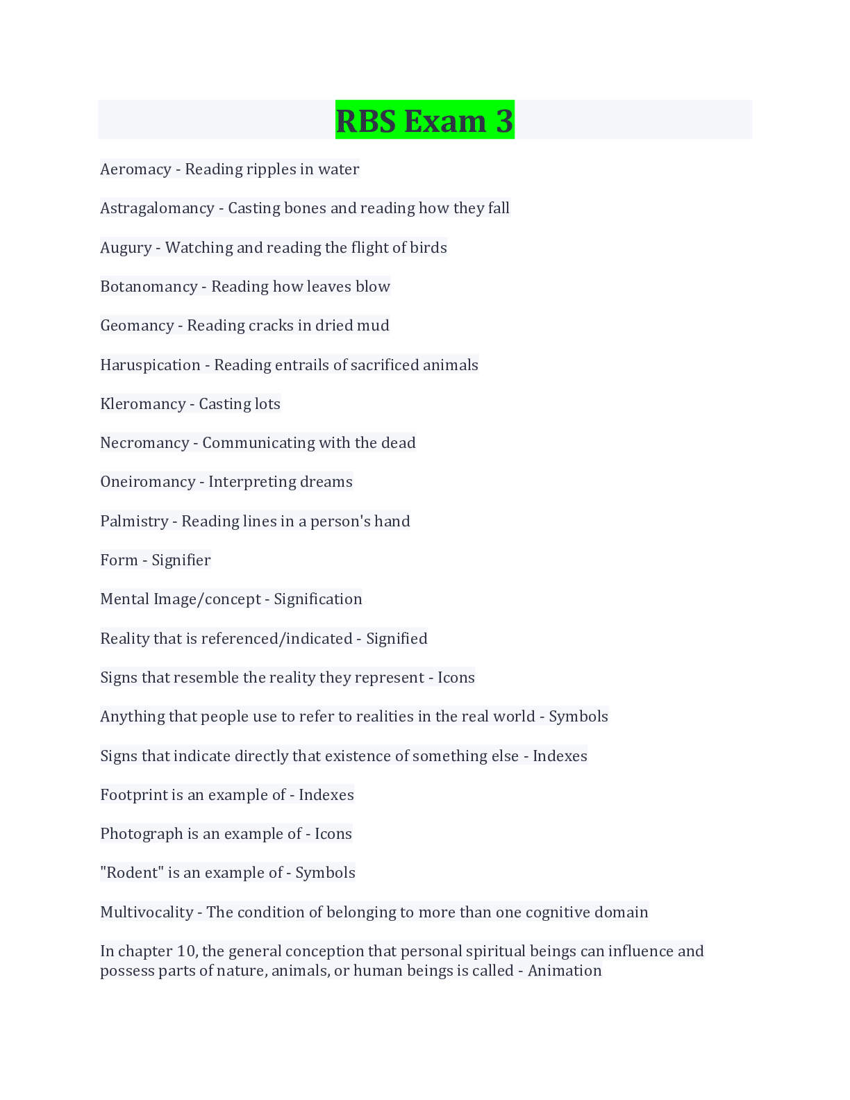 Health Care> EXAM > RBS Exam 3 Latest Update With Complete Solution (All)