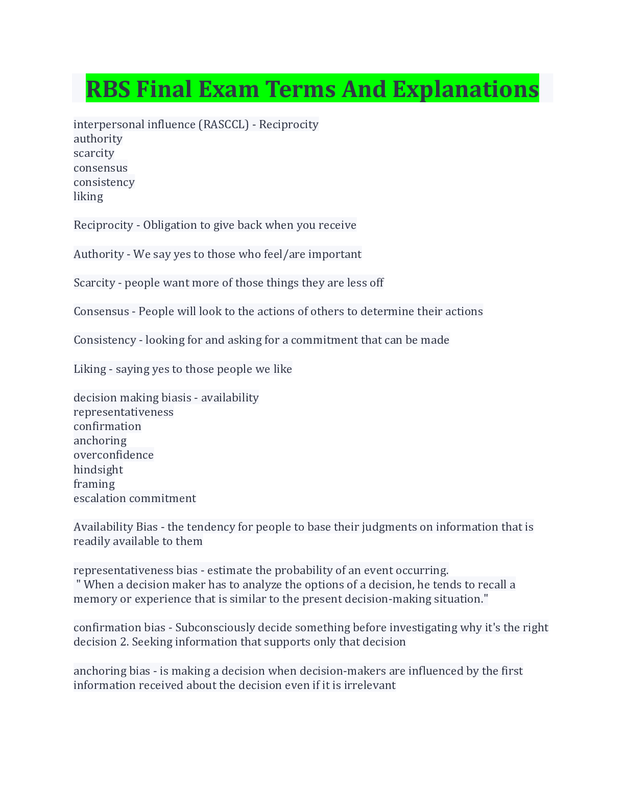 Health Care> EXAM > RBS Final Exam Terms And Explanations 2022/2023 (All)