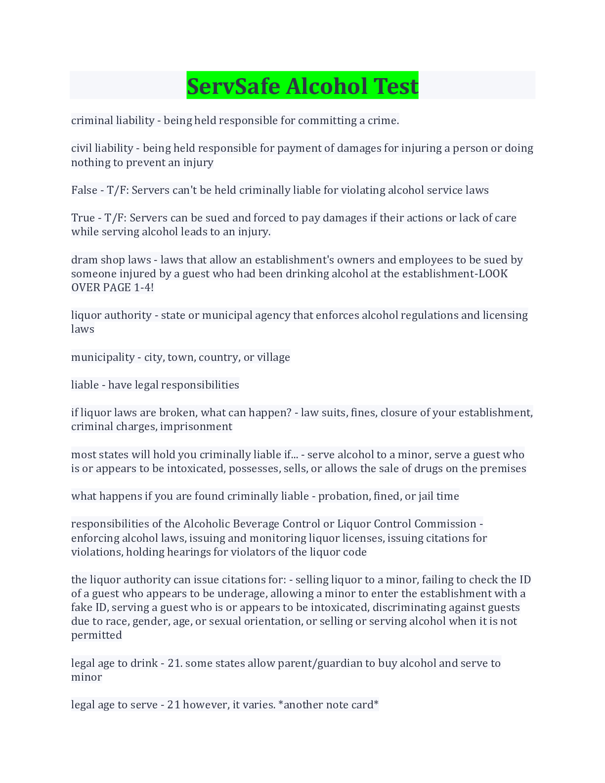 ServSafe Alcohol Test 2022/2023 With Complete Solution
