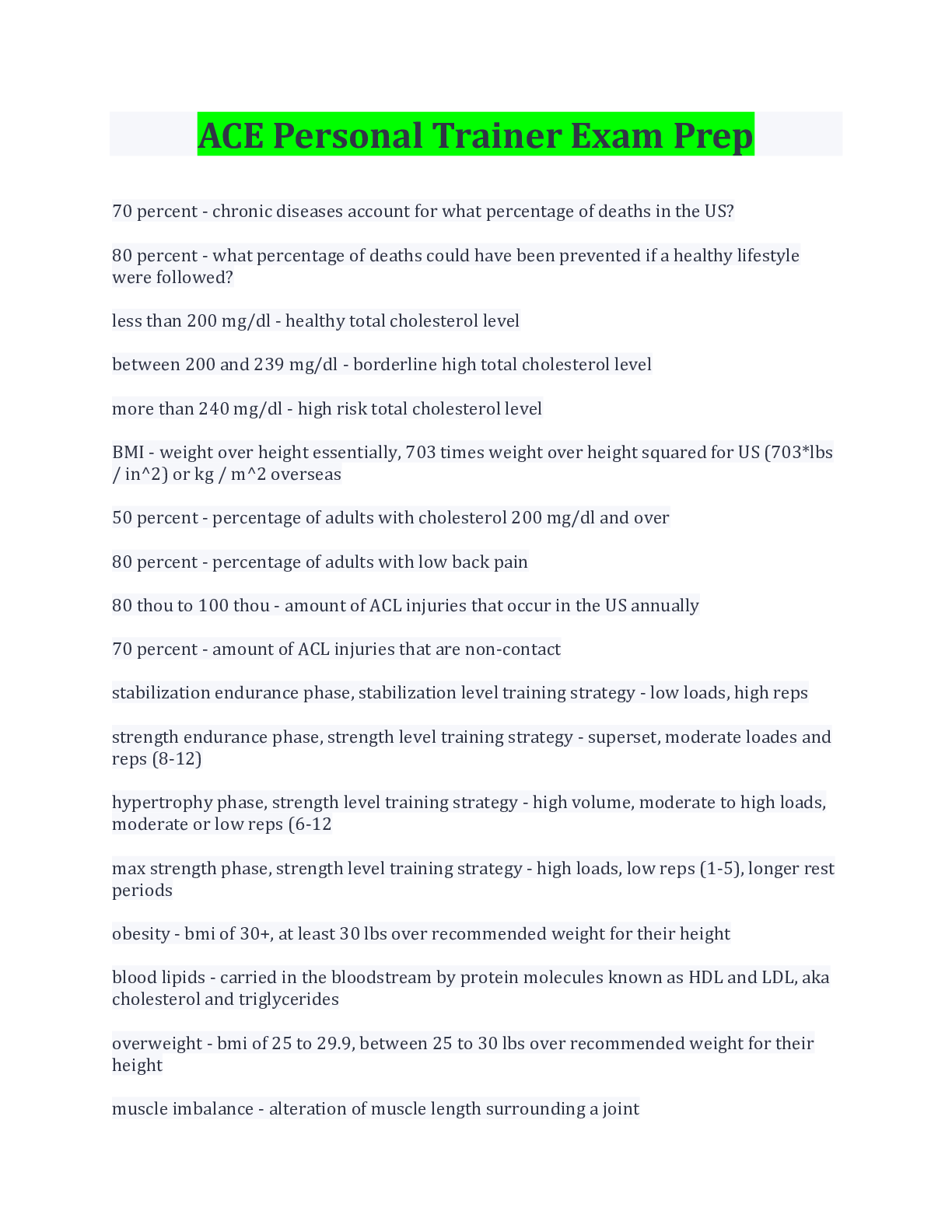 Health Care> EXAM > ACE Personal Trainer Exam Prep 2022/2023 (All)