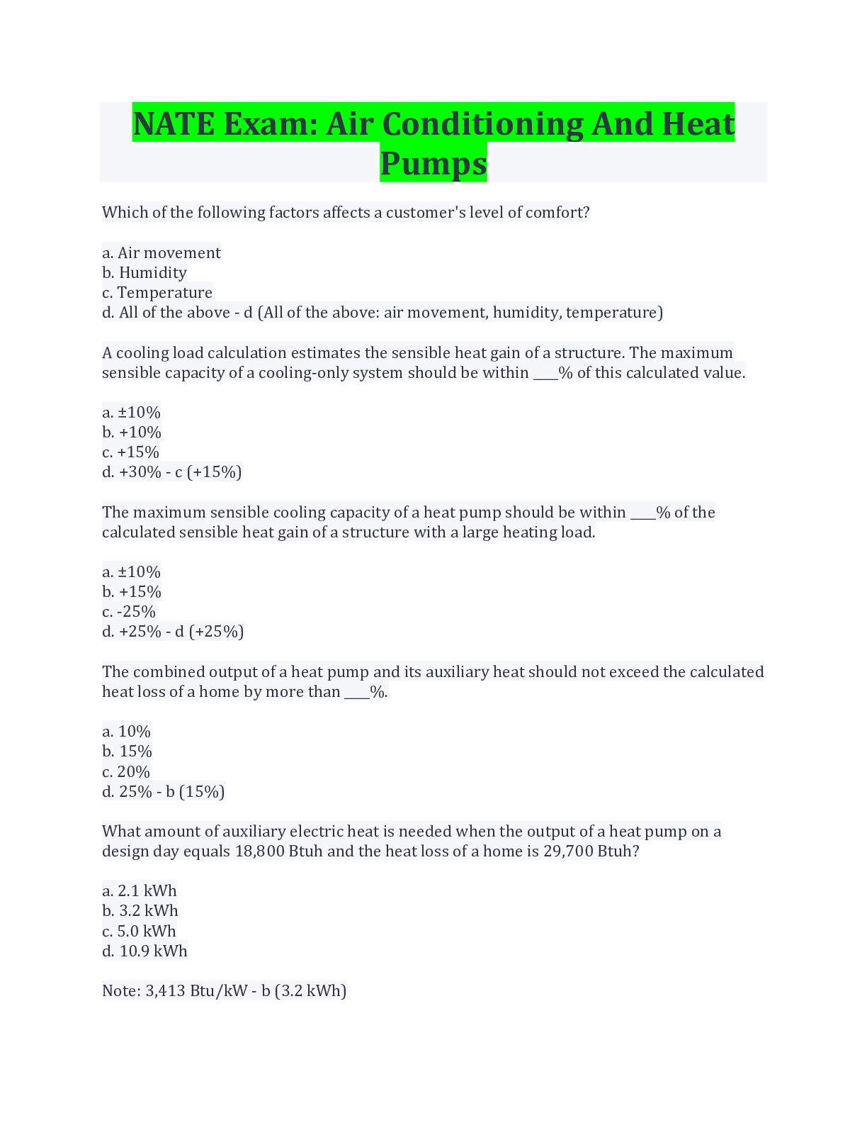 NATE Heat Pump Exam Questions And Answers With Complete Solution