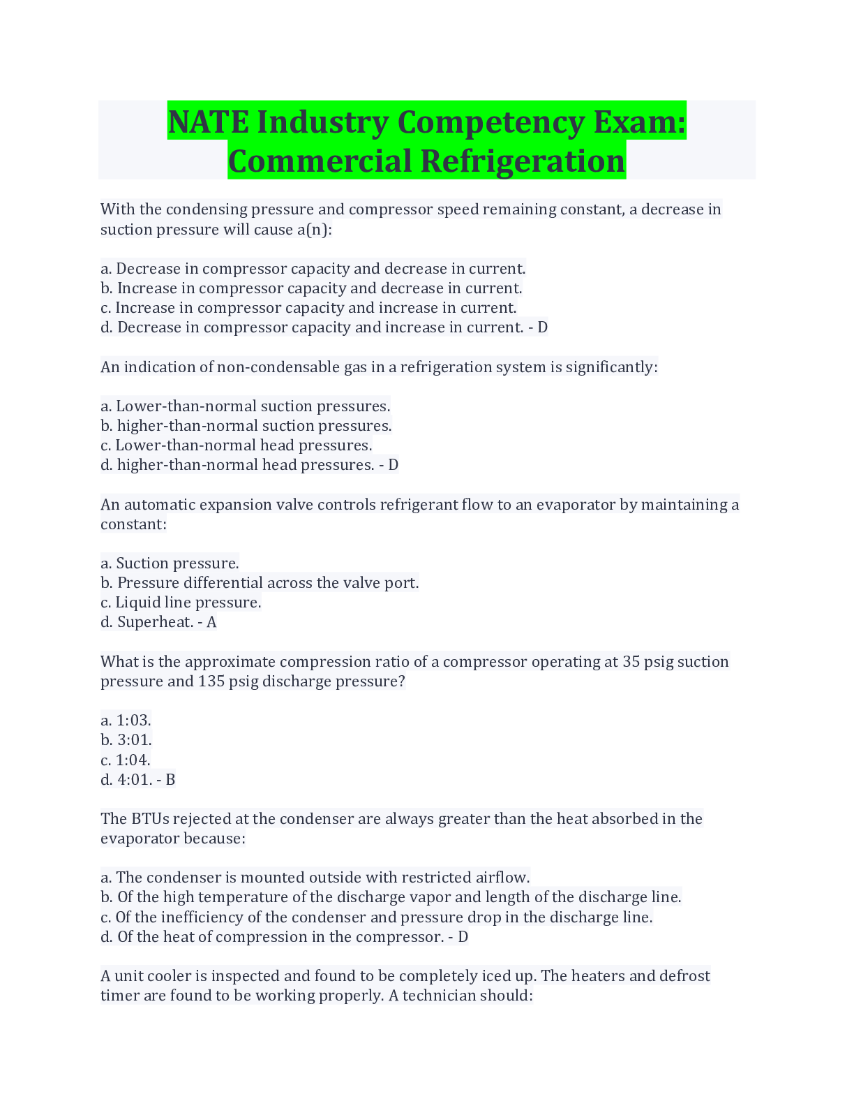 NATE Industry Competency Exam: Commercial Refrigeration Latest Update