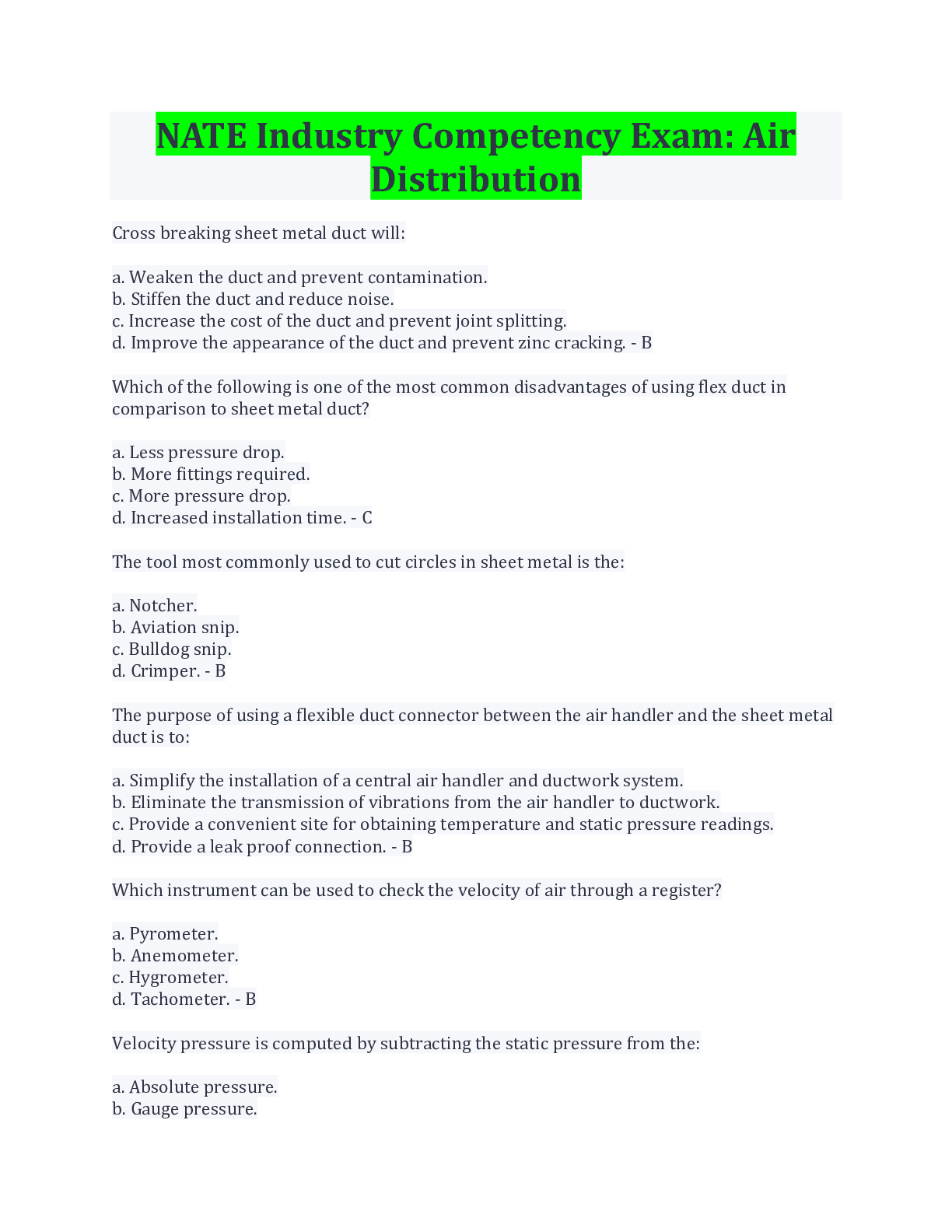 NATE Industry Competency Exam: Air Distribution Questions And Answers