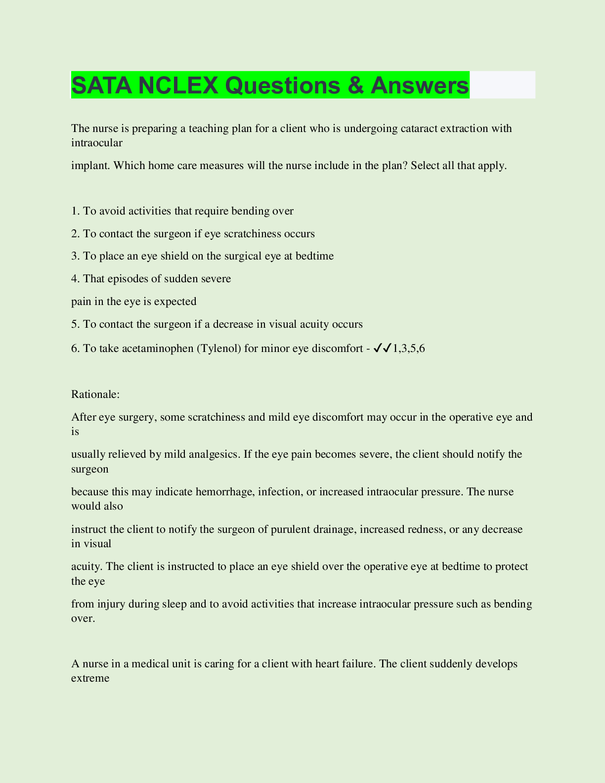 *NURSING> QUESTIONS & ANSWERS > SATA NCLEX Questions & Answers | Questions with 100% Correct Answers | Updated & Verified | 41 Pages (All)