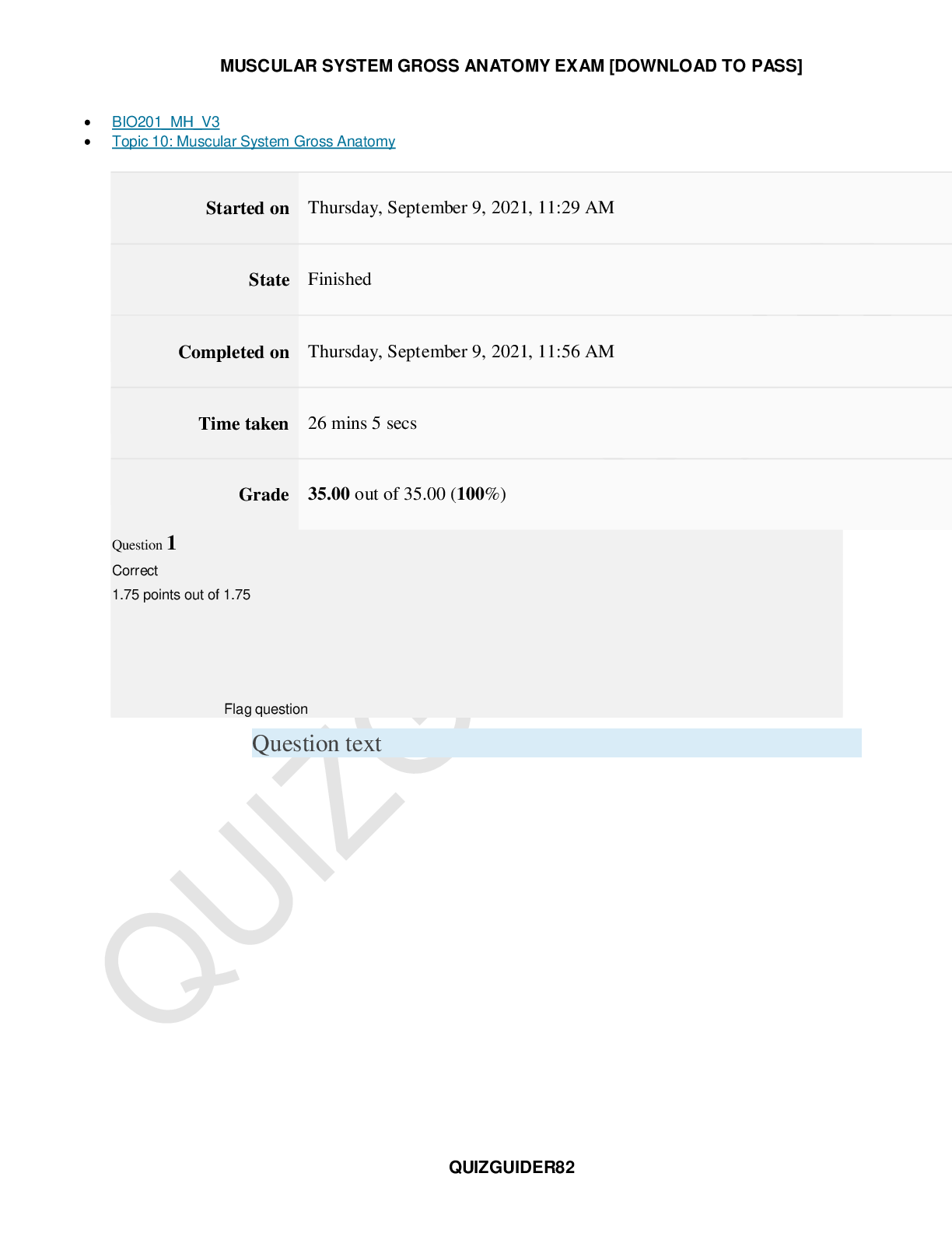 BIO201_MH_V3 Topic 10: Muscular System Gross Anatomy Started on Thursday, September 9, 2021, 11:29 AM State Finished Completed on Thursday, September 9, 2021, 11:56 AM Time taken 26 mins 5 se...