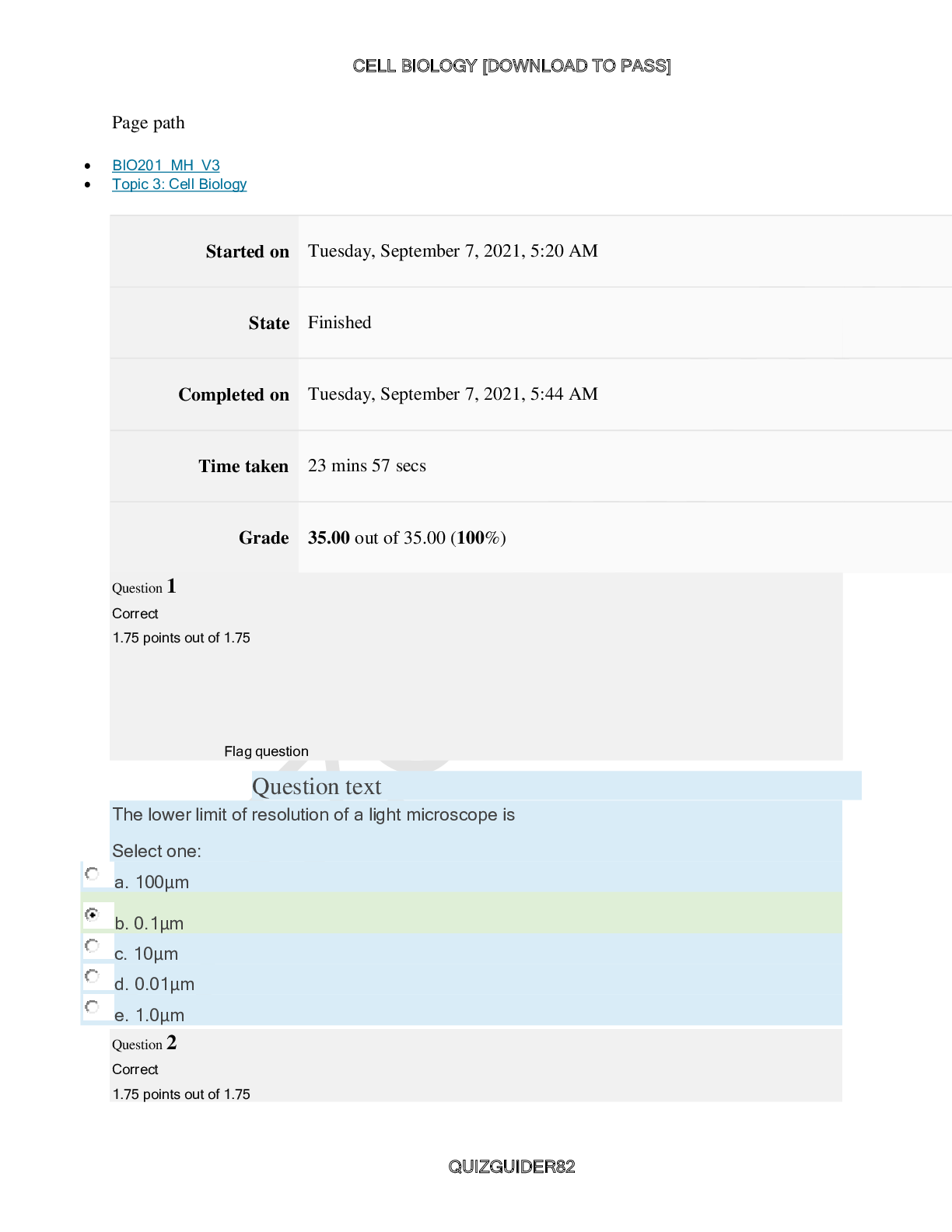 Anatomy and Physiology - A&P 1> QUESTIONS & ANSWERS > BIO201_MH_V3: Cell Biology (QUESTIONS WITH CORRECT ANSWERS) (All)