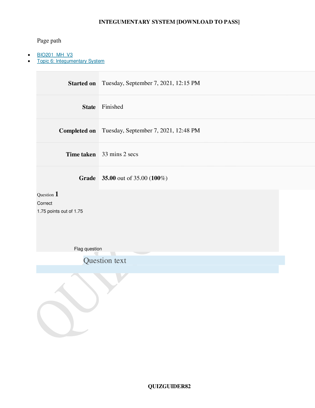 Anatomy and Physiology - A&P 1> QUESTIONS & ANSWERS > BIO201_MH_V3: Integumentary System (QUESTIONS AND CORRECT ANS) (All)