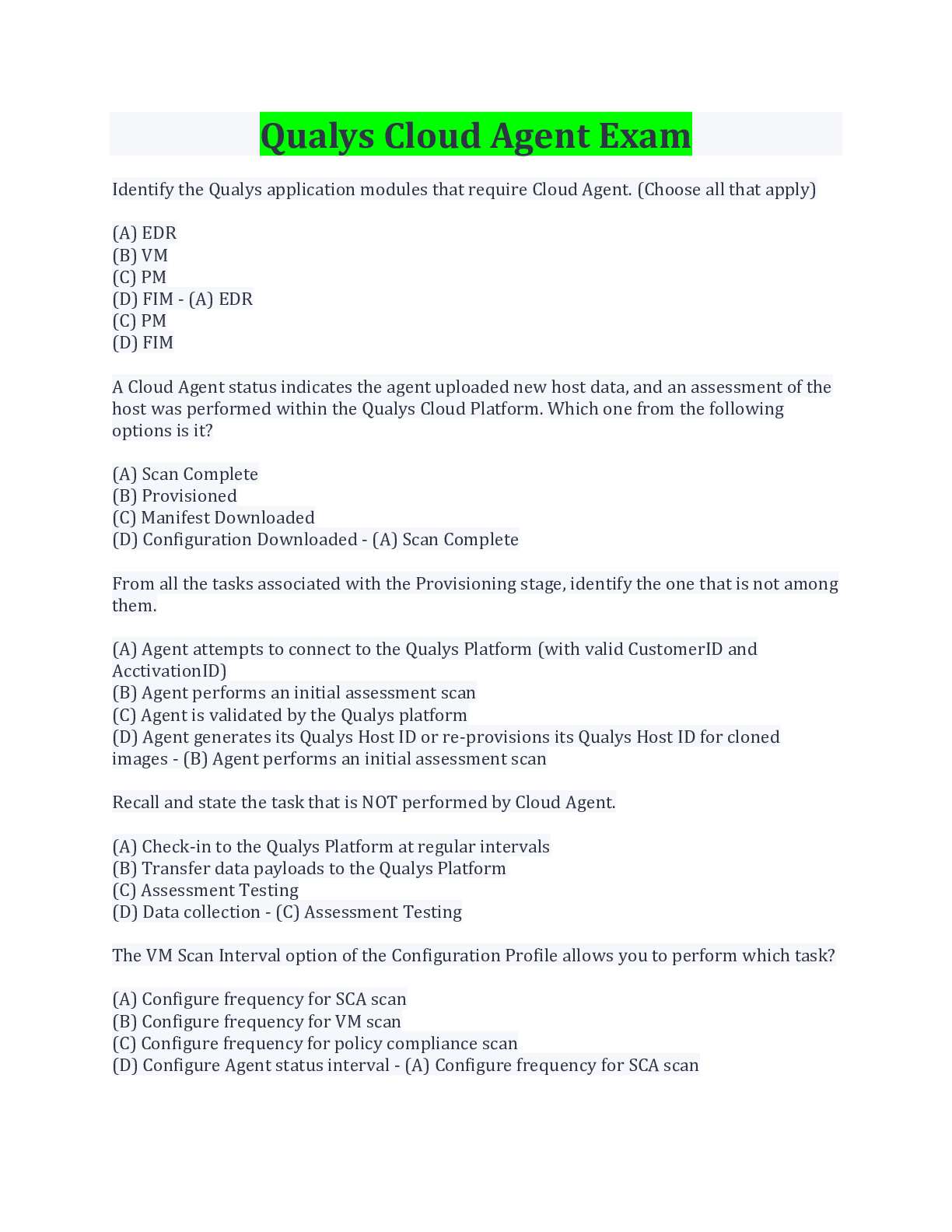 Qualys Cloud Agent Exam Questions And Answers