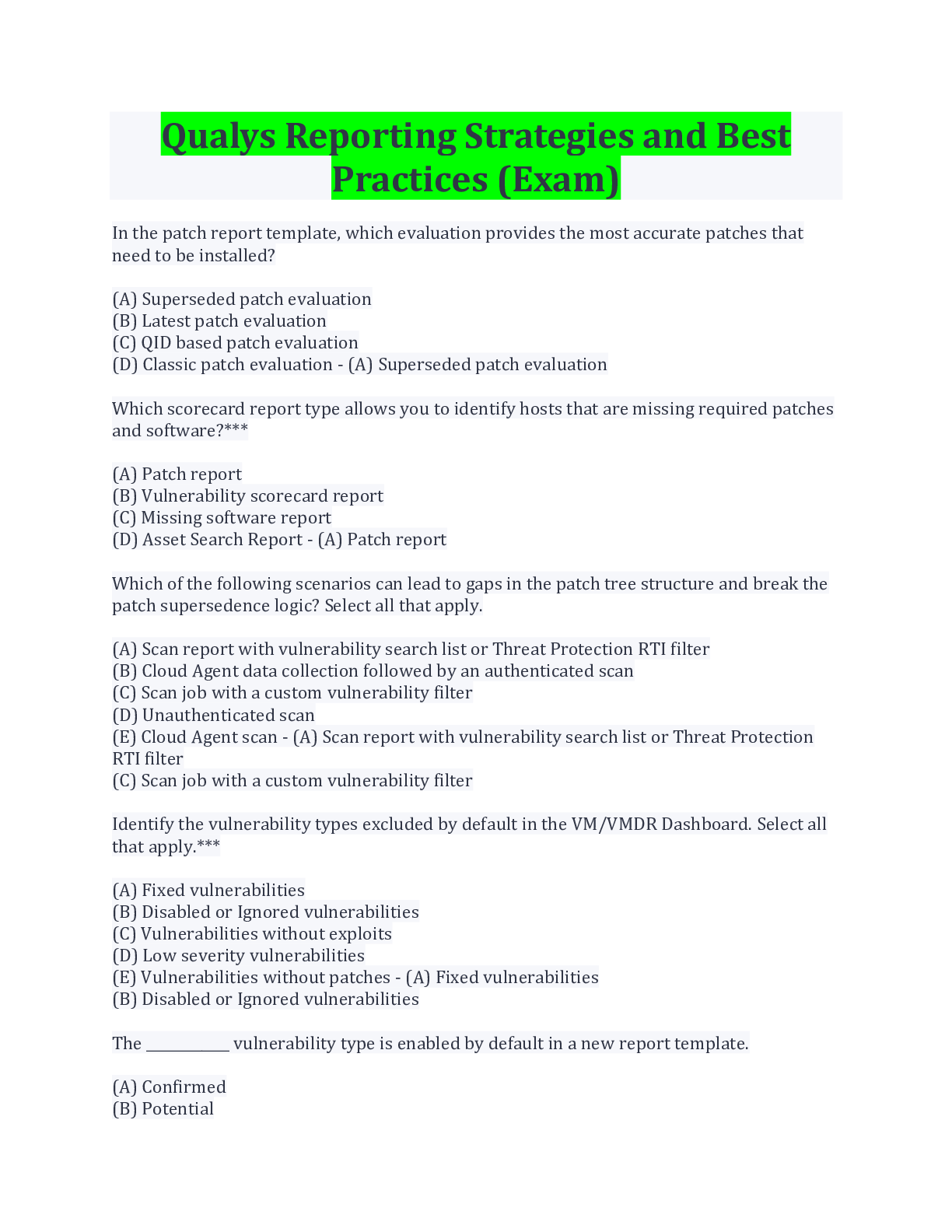 Education> EXAM > Qualys Reporting Strategies and Best Practices (Exam) Latest Update (All)