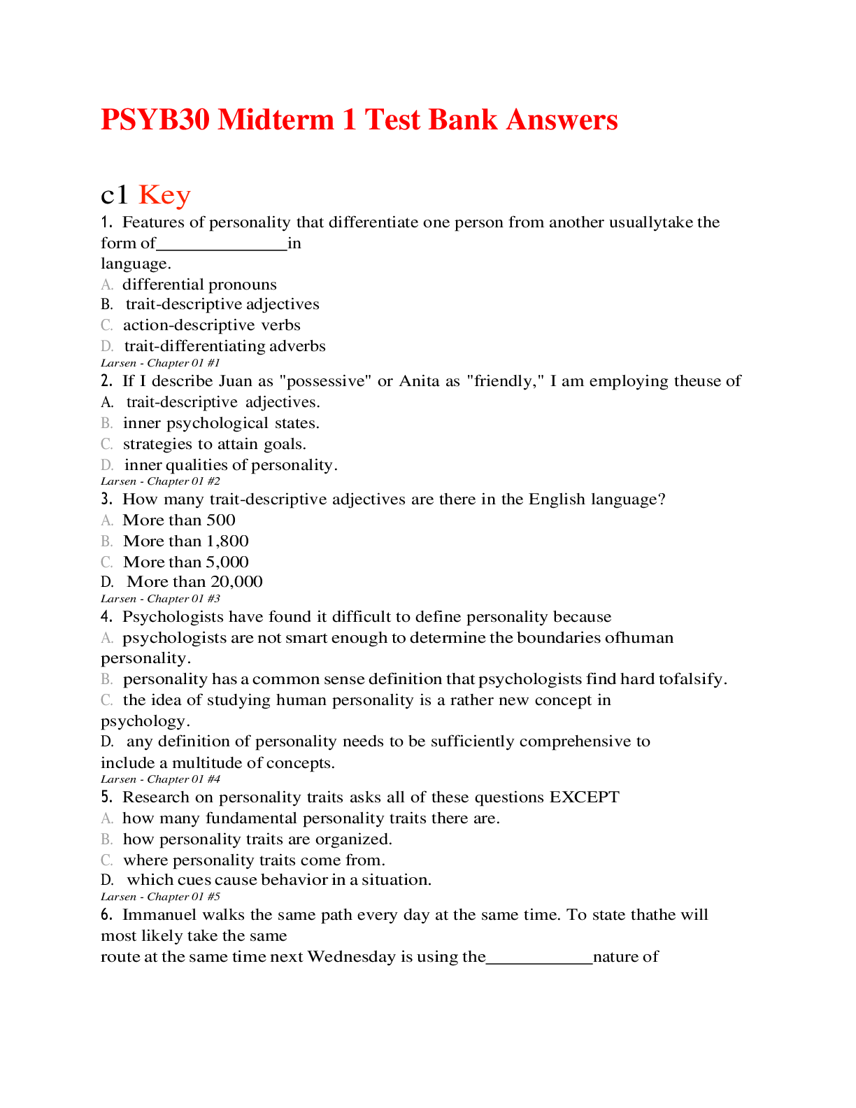 PSYB30 Midterm 1 Test Bank AnswersPSYB30 Midterm 1 Test Bank AnswersPSYB30 Midterm 1 Test Bank AnswersPSYB30 Midterm 1 Test Bank AnswersPSYB30 Midterm 1 Test Bank AnswersPSYB30 Midterm 1 Test Bank Ans...