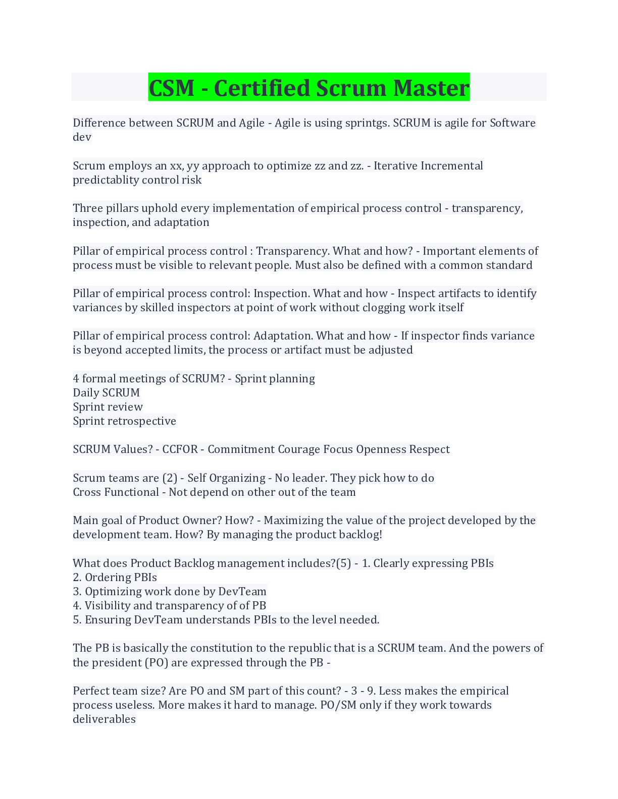 Business> EXAM > CSM - Certified Scrum Master Questions And Answers (All)