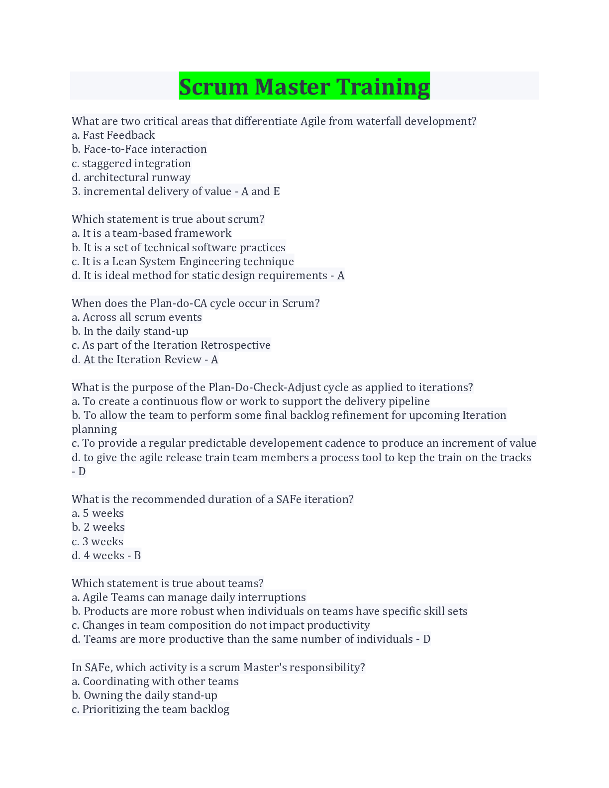 Business> EXAM > Scrum Master Training Questions And Answers (All)