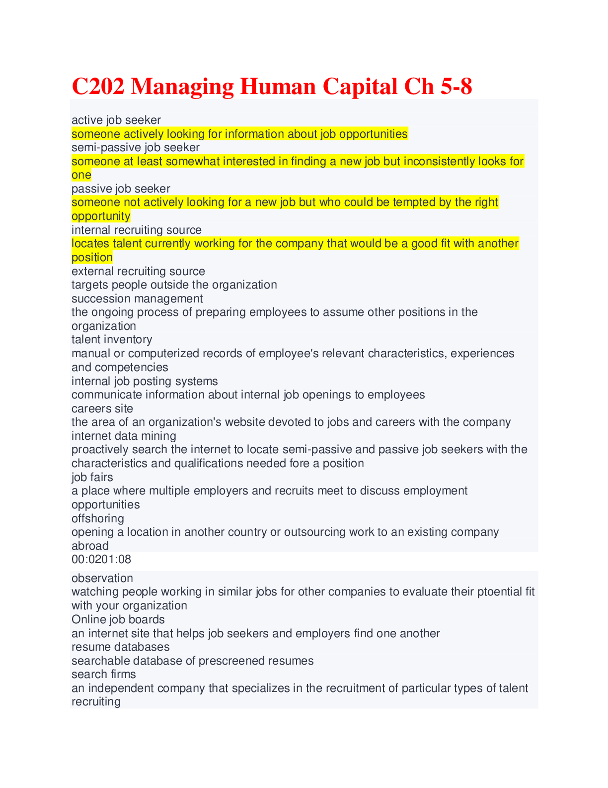 Human Resource Management > EXAM > C202 Managing Human Capital Ch 5-8 Exams/ Score A+ (All)