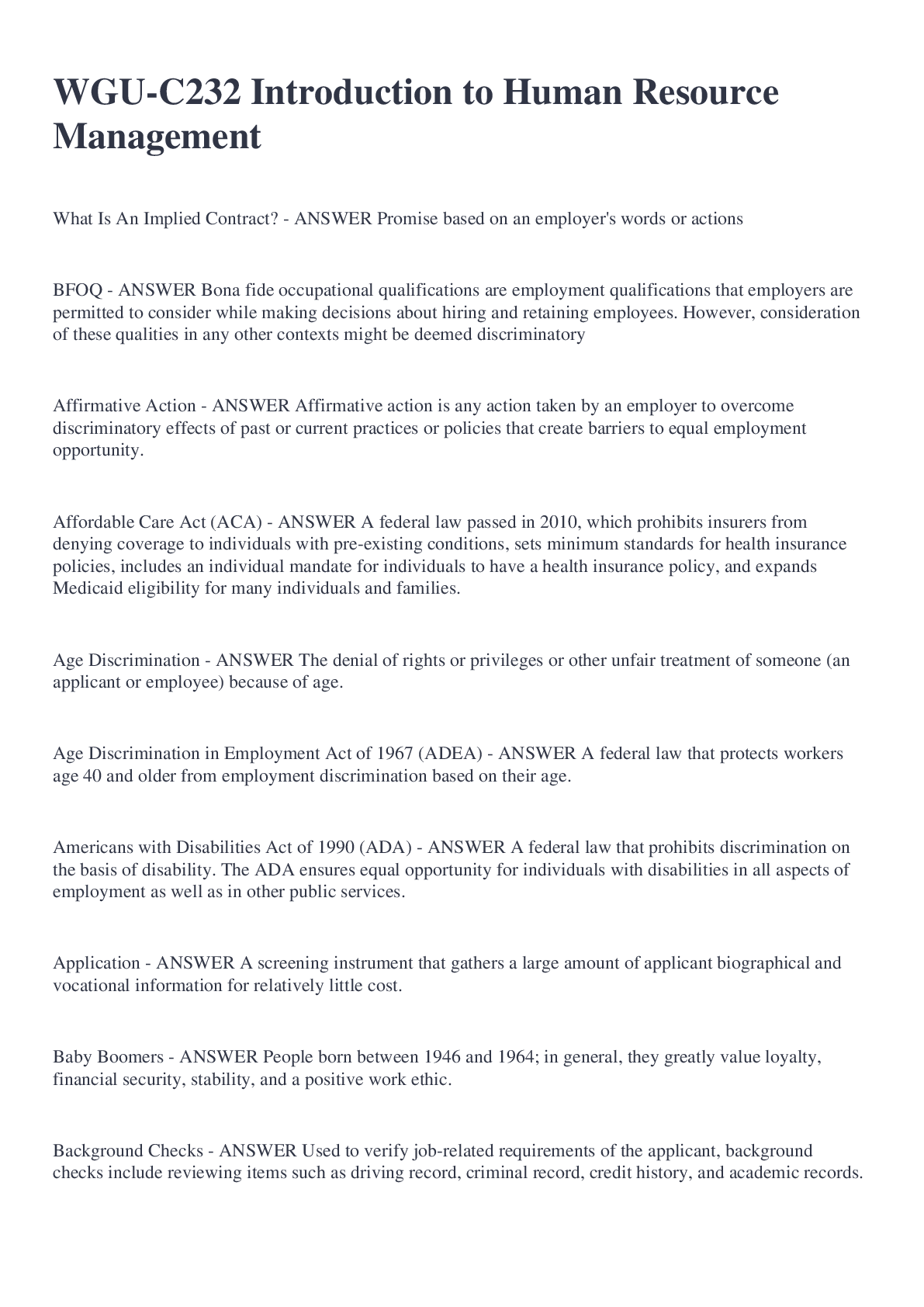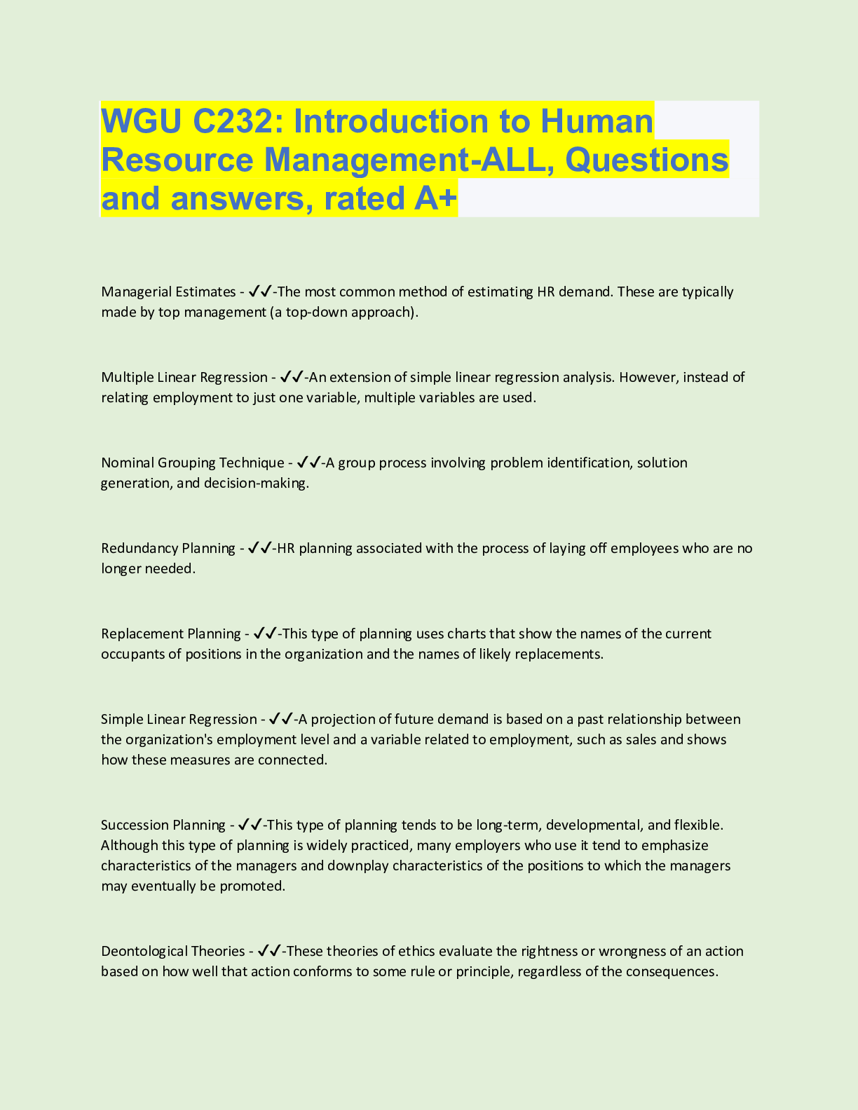Human Resource Management > EXAM > WGU-C232 Introduction to Human Resource Management Graded A+ (All)