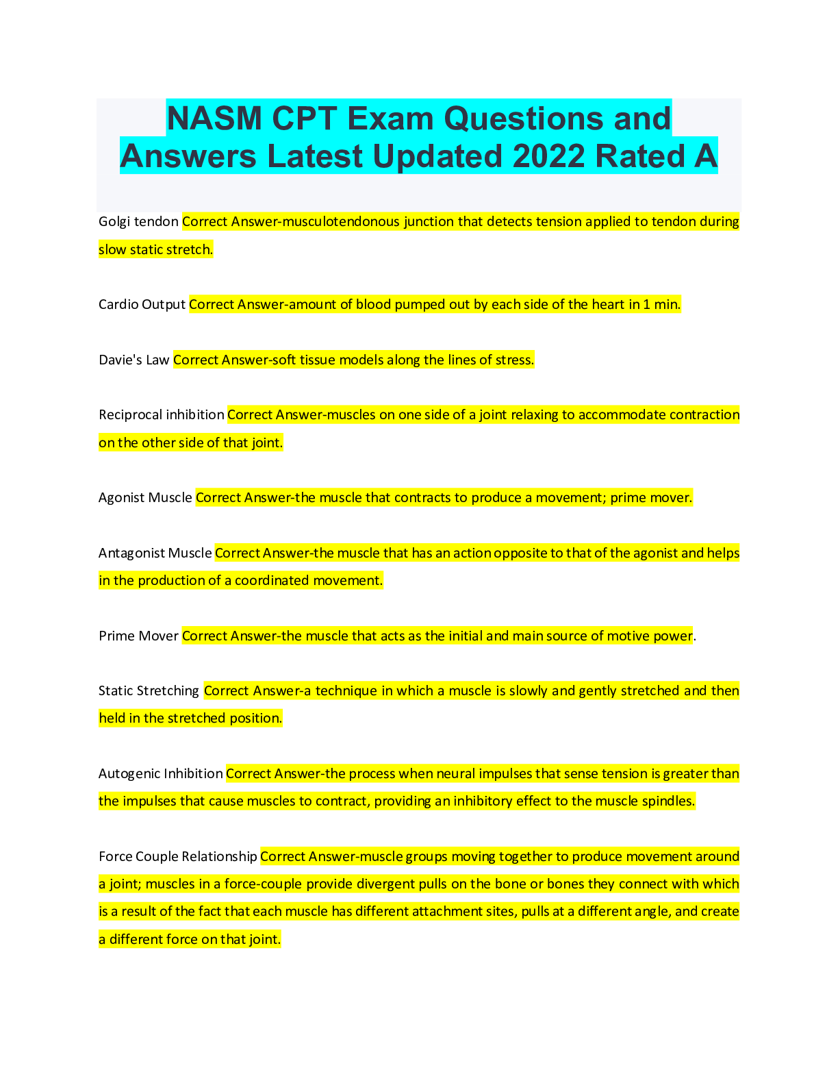 Medical Studies > EXAM > NASM CPT Exam Questions and Answers Latest Updated 2022 Rated A (All)